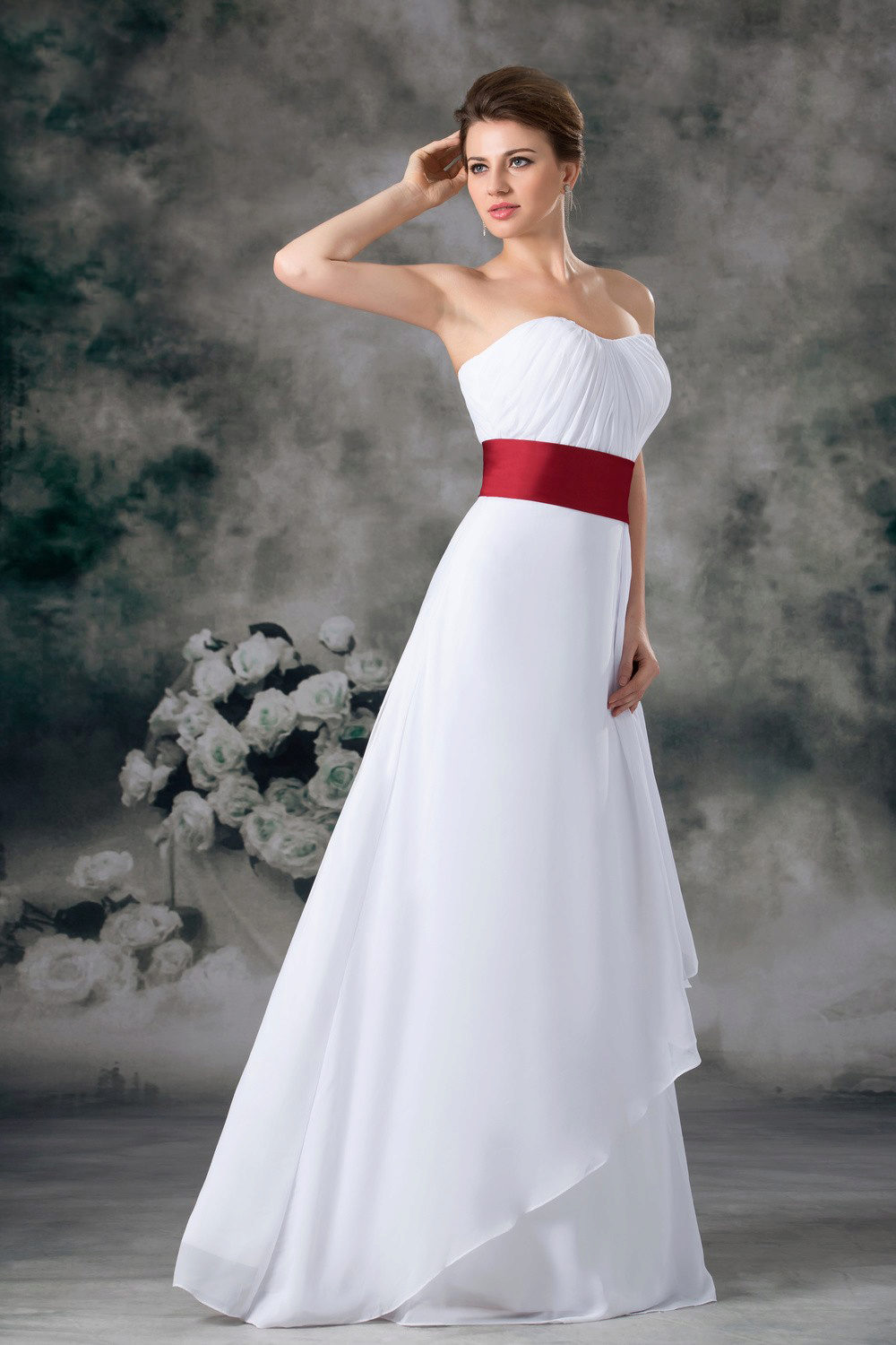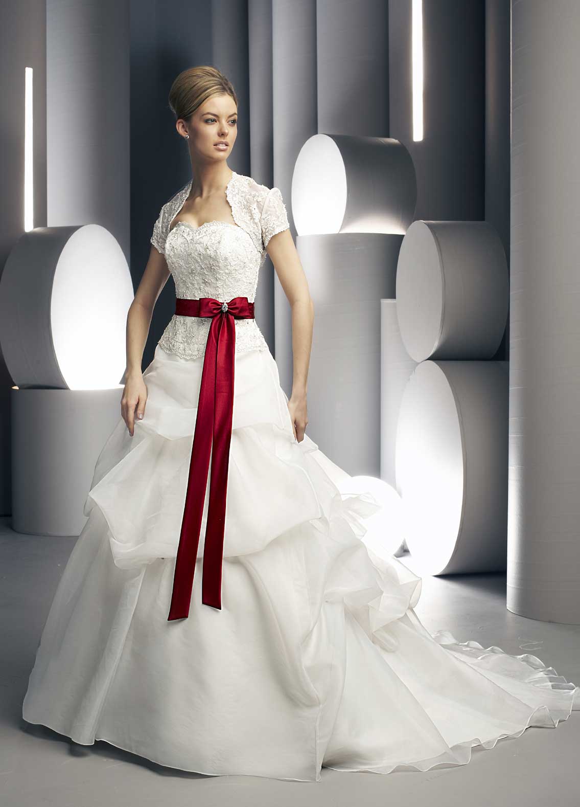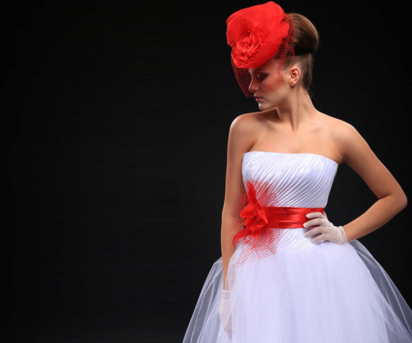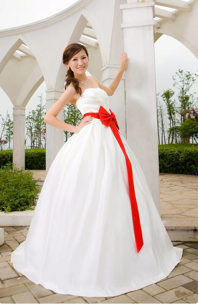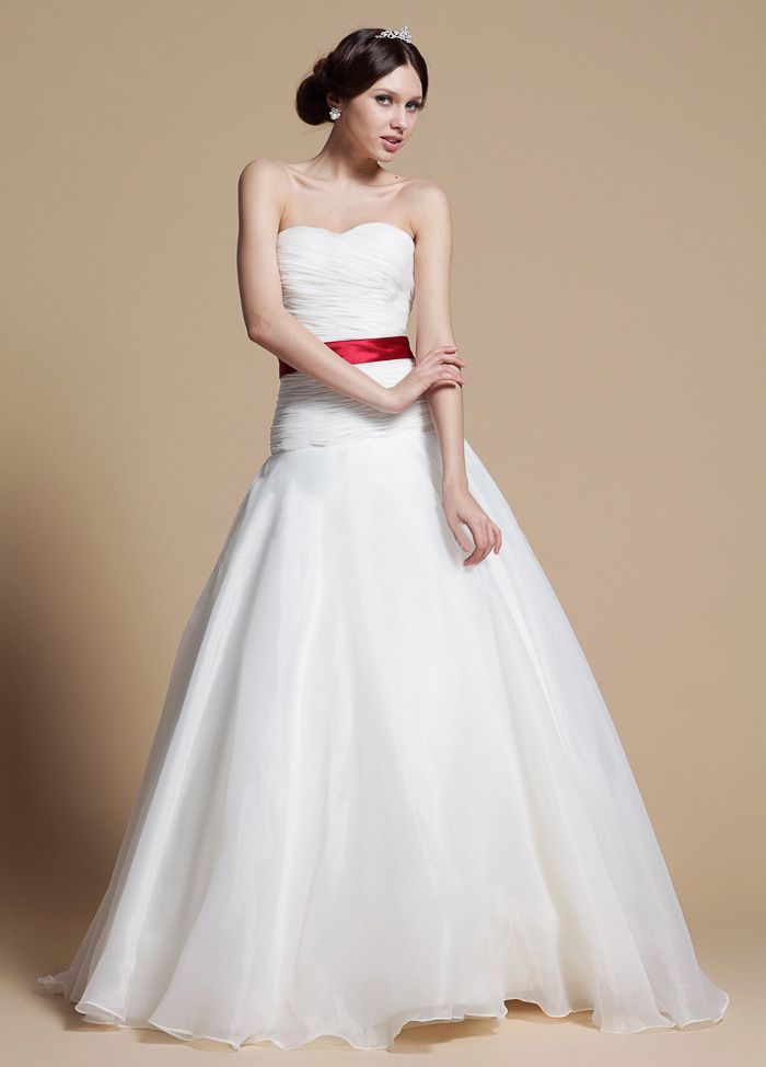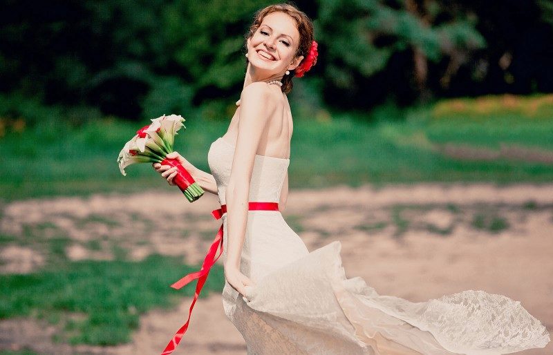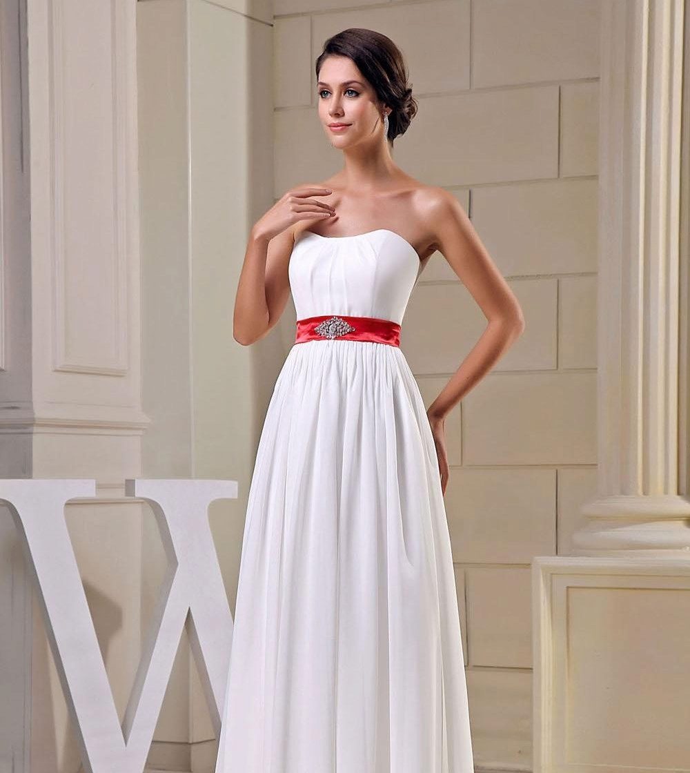Wedding dress with a red belt - we place spectacular accents