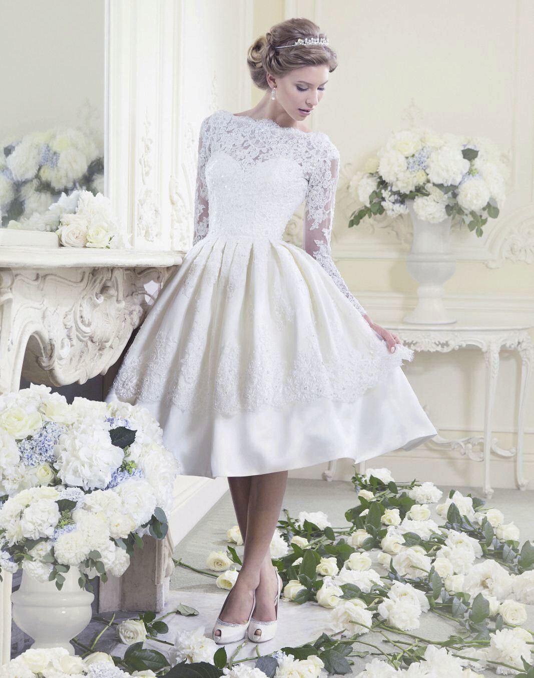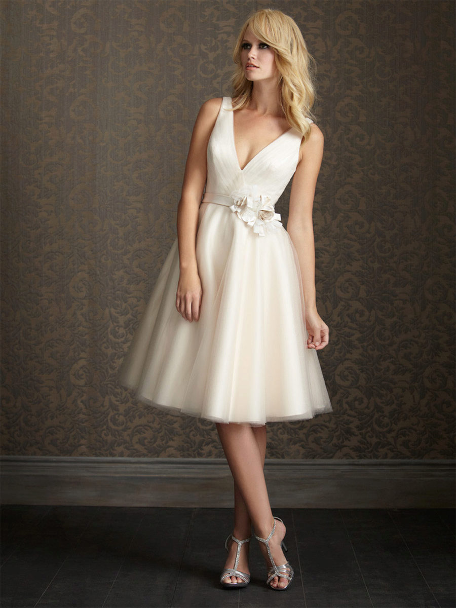If you are focusing on a lightweight version from the very beginning, then pay attention to dresses of cocktail length, up to the knees or a little longer. A dress of such length made of delicate flowing fabric or with a full skirt will look extraordinarily romantic.