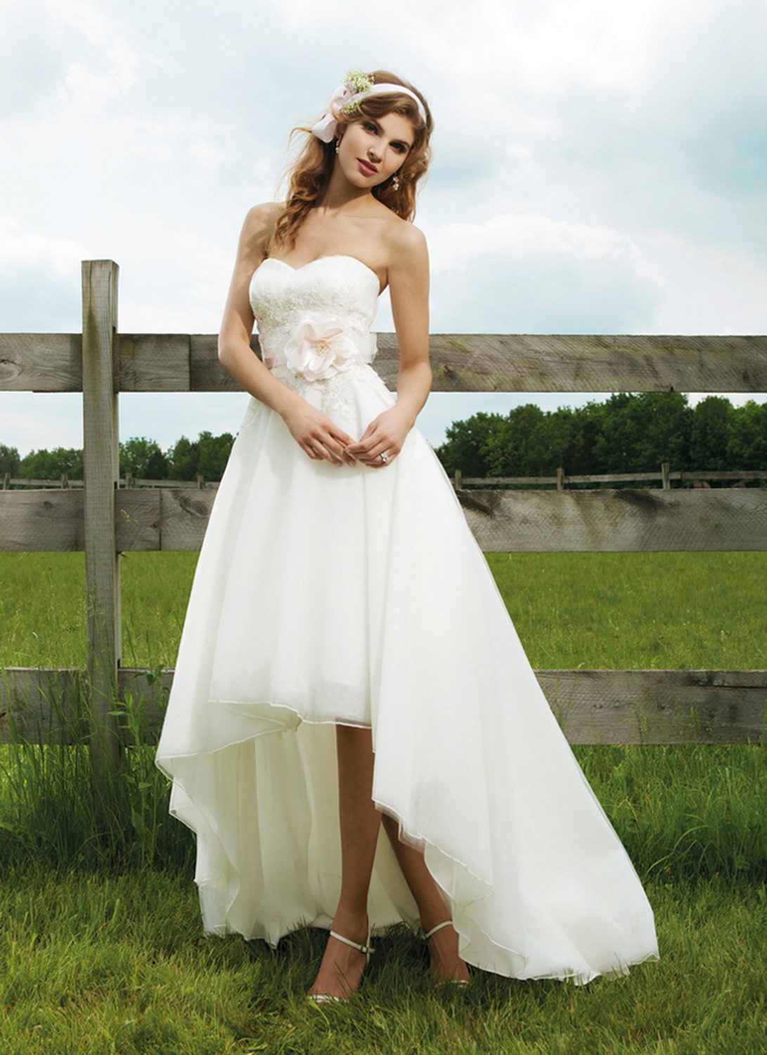 At the solemn ceremony of registration you will have a magnificent long skirt, and then, as they say, with a flick of the wrist, you will turn your wedding dress into a short dress, in which it is much more comfortable to dance, and generally more comfortable to be. The outfit may remain long, but not so lush.