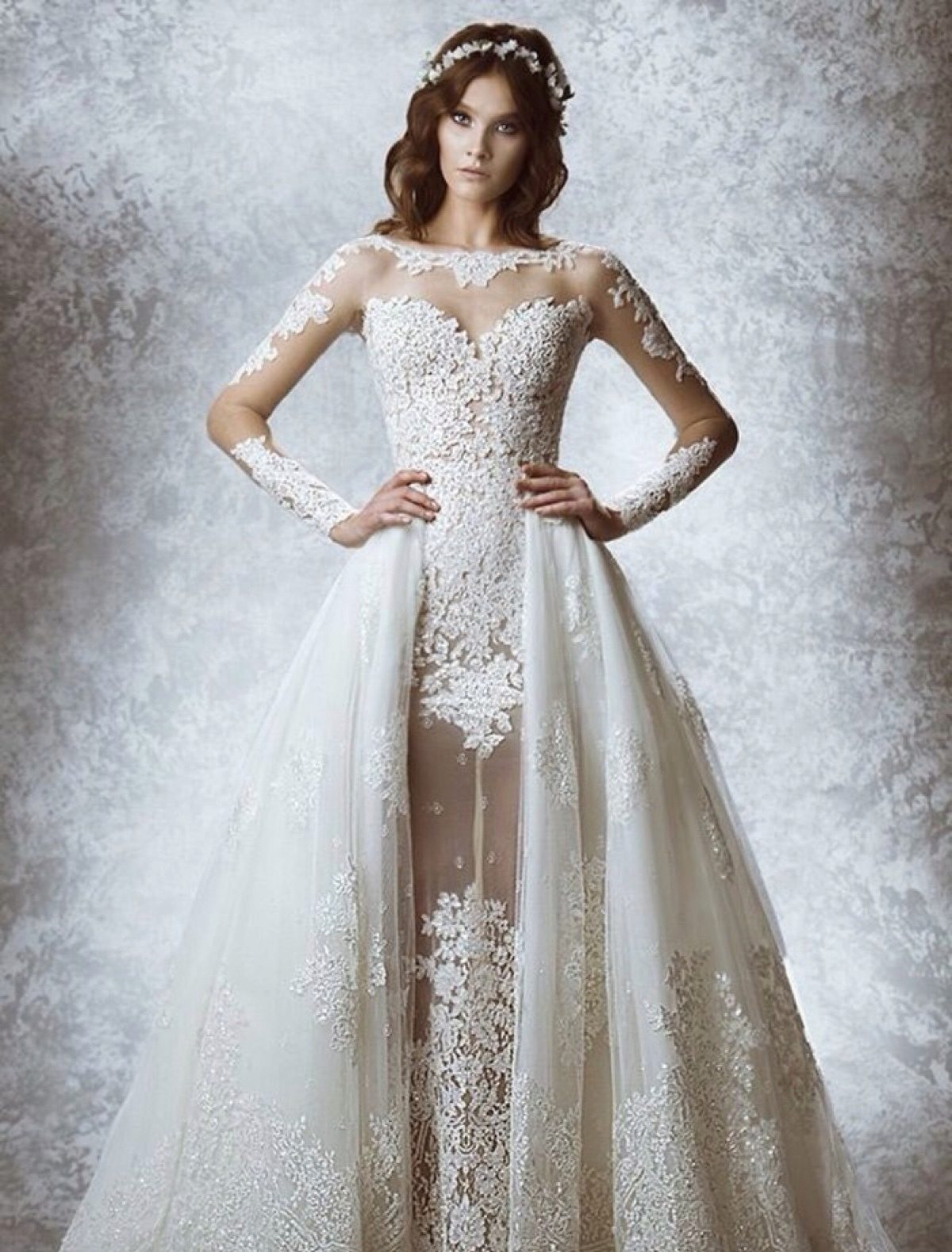 Sleeves are rarely seen in summer wedding dresses. They are mostly short and lace or from transparent fabric. The cut is usually quite deep and opens the upper chest.