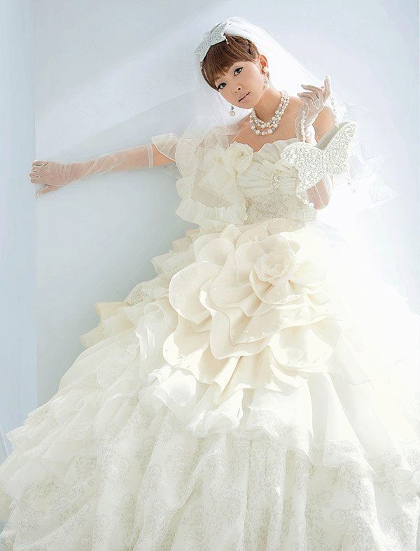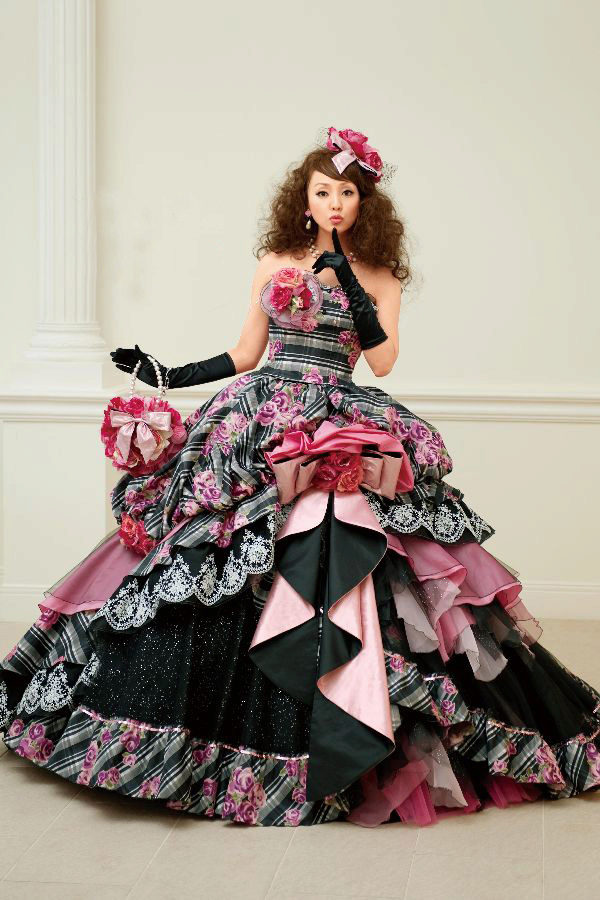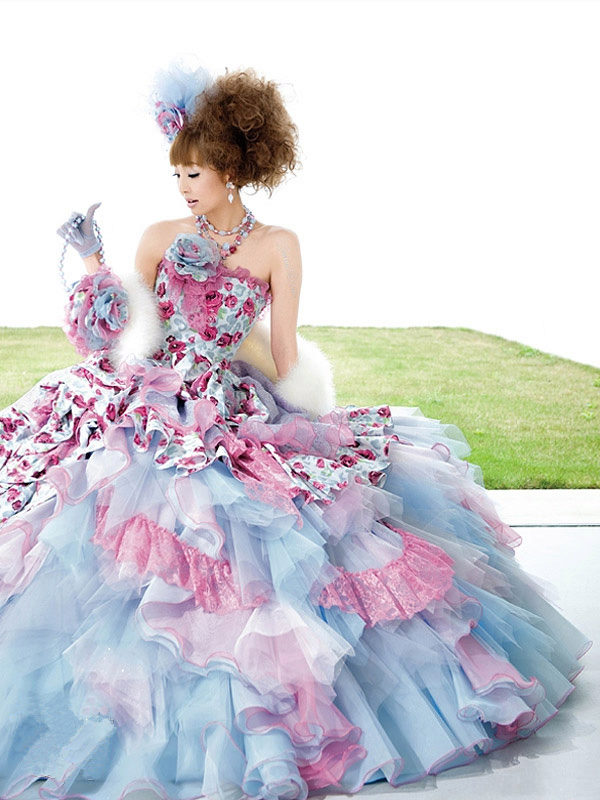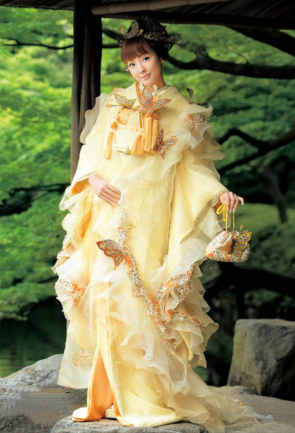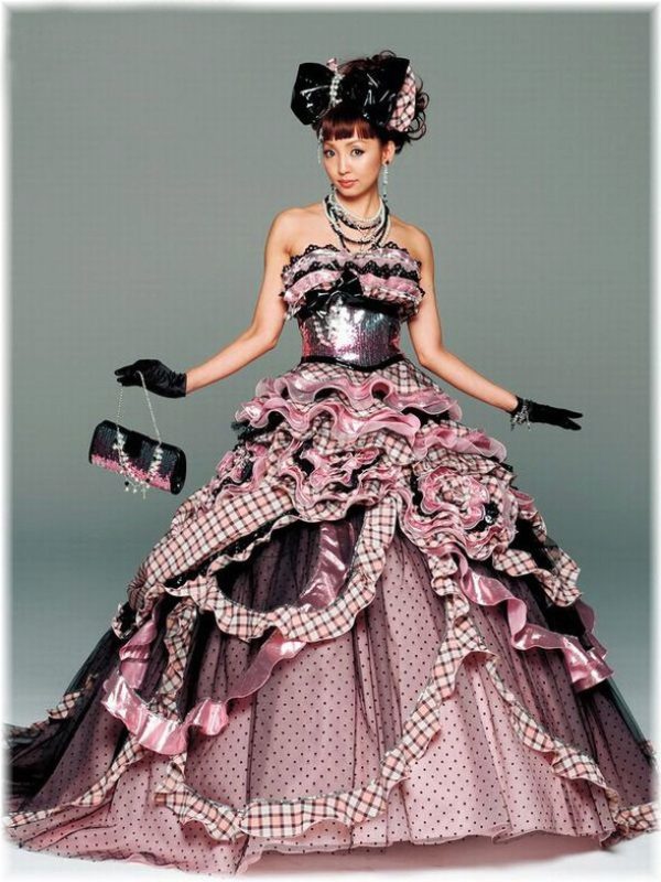Dresses created fashion designer Uno Kanda. Models vary in color from white to magenta, green and red. Dresses with airy skirts and corsets, narrowed down, will create a festive atmosphere. Kimono lovers will be delighted by the finest silk, harmony of tones (there can be about 250 shades of color on one dress).