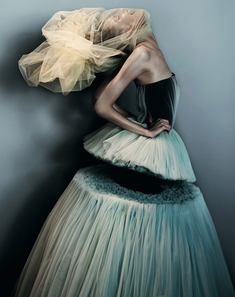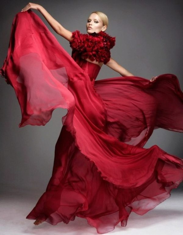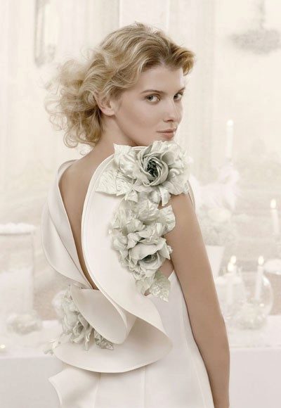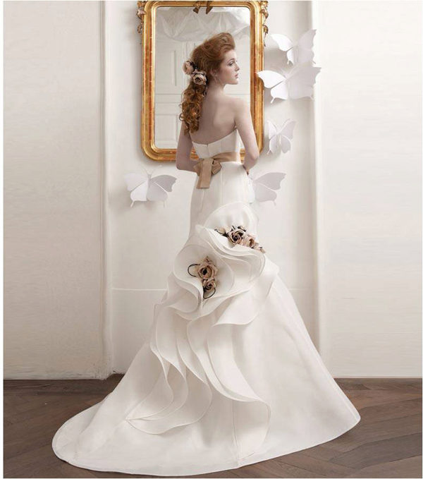 These outfits were created by Angelo Mozzillo. Fashion designer focuses on many details. So, the skirt is decorated with rosettes that create the image of a flower. And the folds are like moving waves.