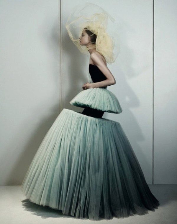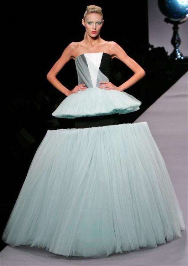 Dresses with glitter, as well as outfits that create the image of pupae, gradually enter the fashion. So, designers from Victor & Rolf presented evening dresses and wedding dresses in a very unusual style at Paris Fashion Week. Bright colors, unusual decor, avant-garde style, frills and pronounced seams - all this is present on the dresses in the floor by Victor & Rolf. The highlight of the show was a wedding dress, looking at which you might think that you are floating above the ground. Fashion designers also focused on accessories. Clutches, shoes, necklaces - everything creates a unique image, full of playfulness, chic and audacity.
