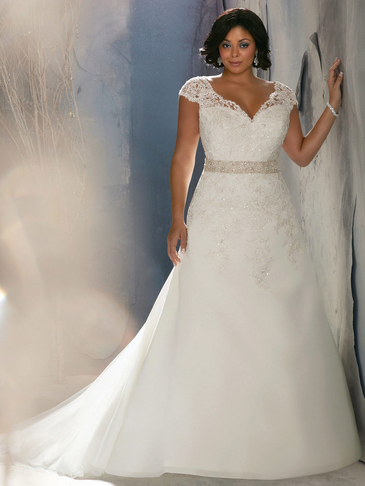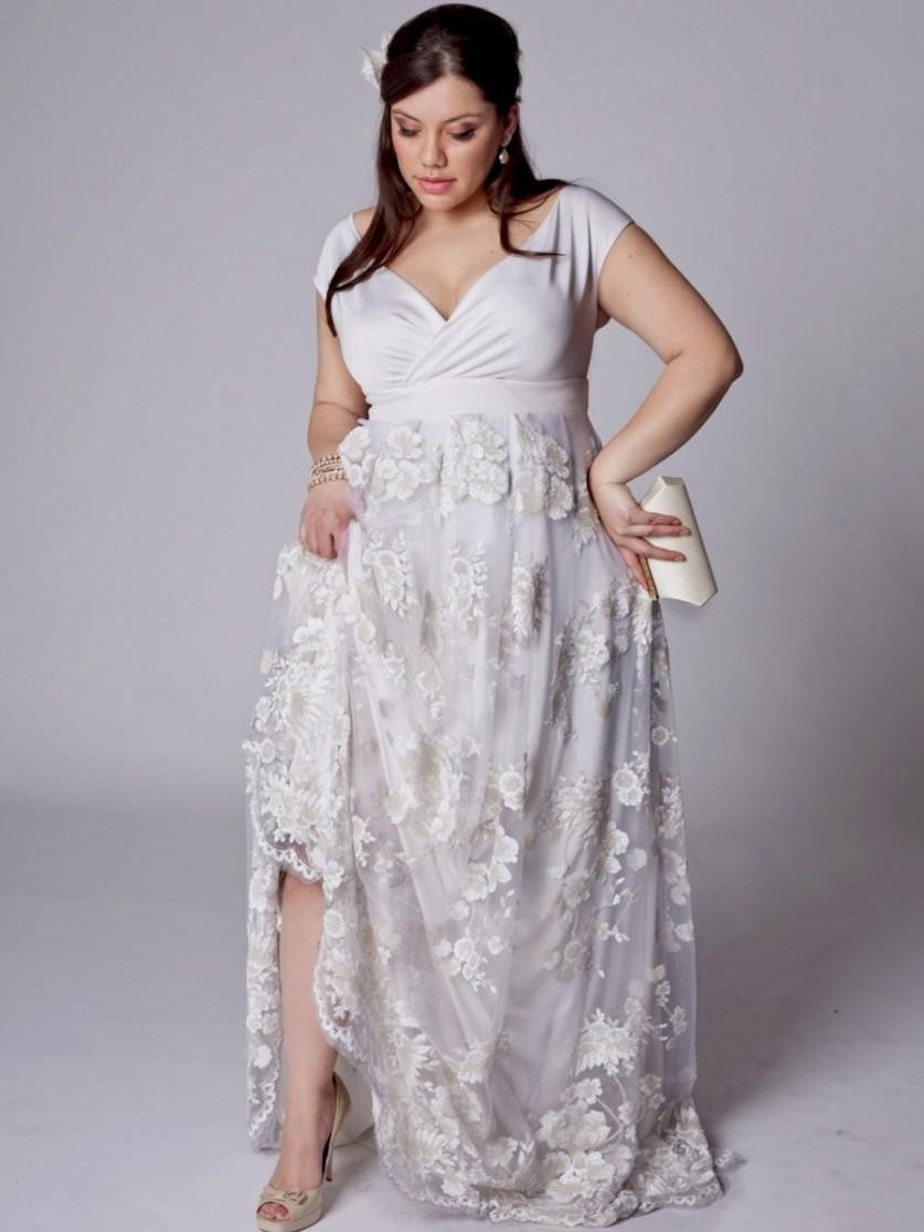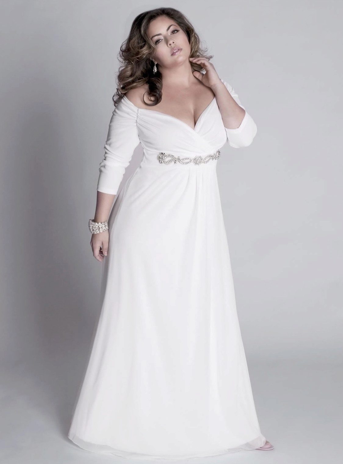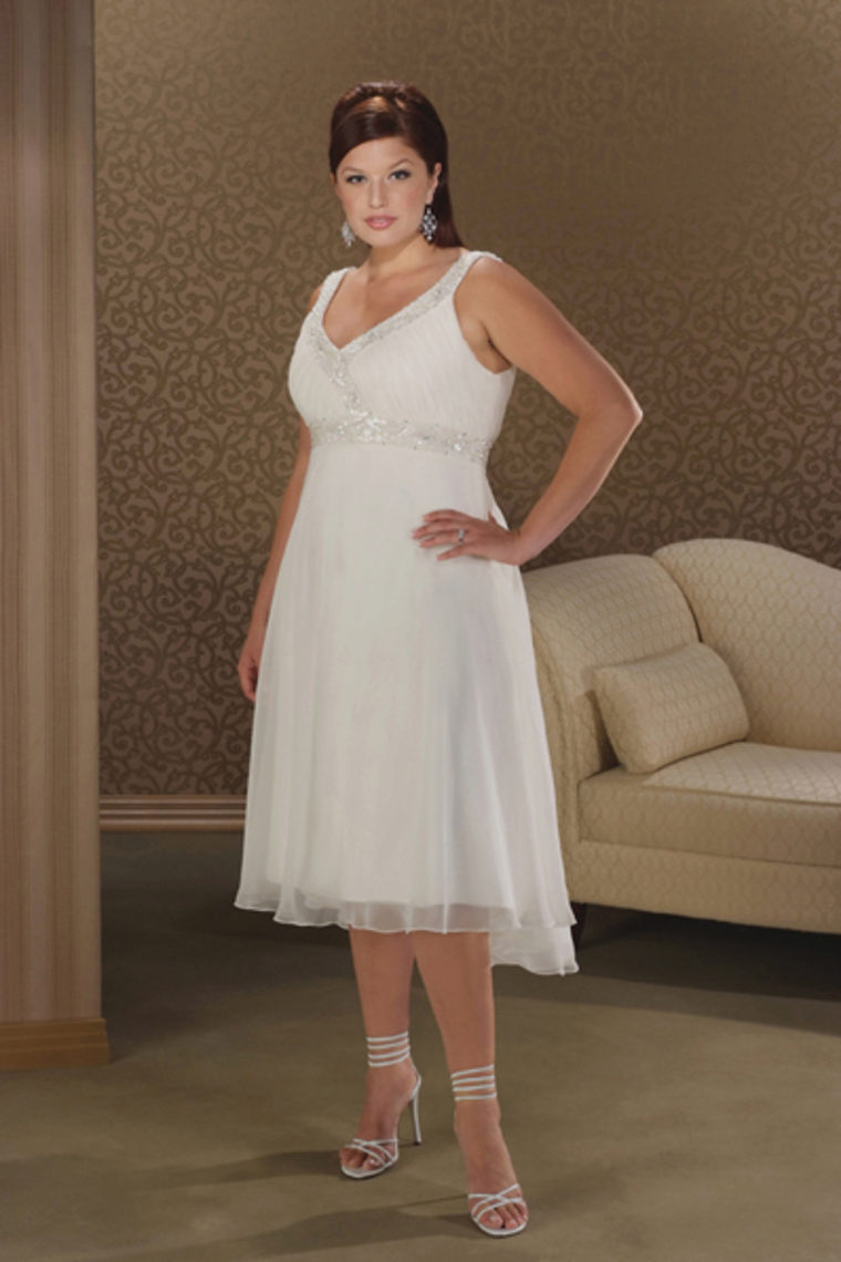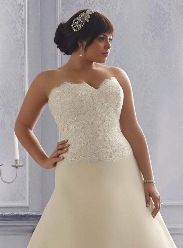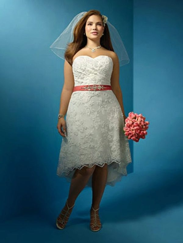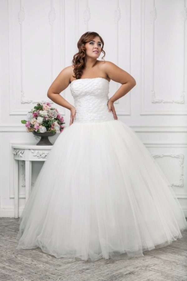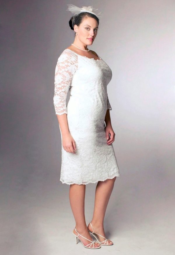 Most full brides prefer long dresses that emphasize the uniqueness and solemnity of the event. Recently, however, short dresses are becoming more and more popular, especially among owners of beautiful slender legs that they want to demonstrate.