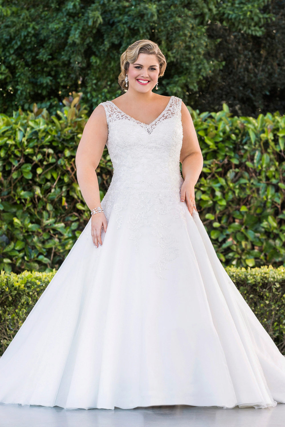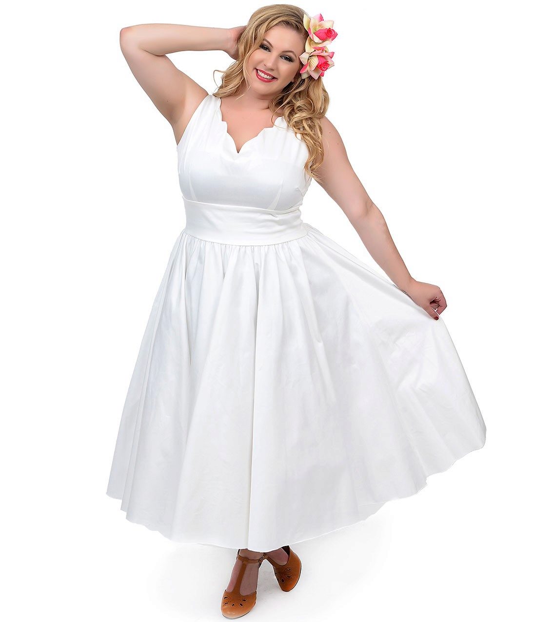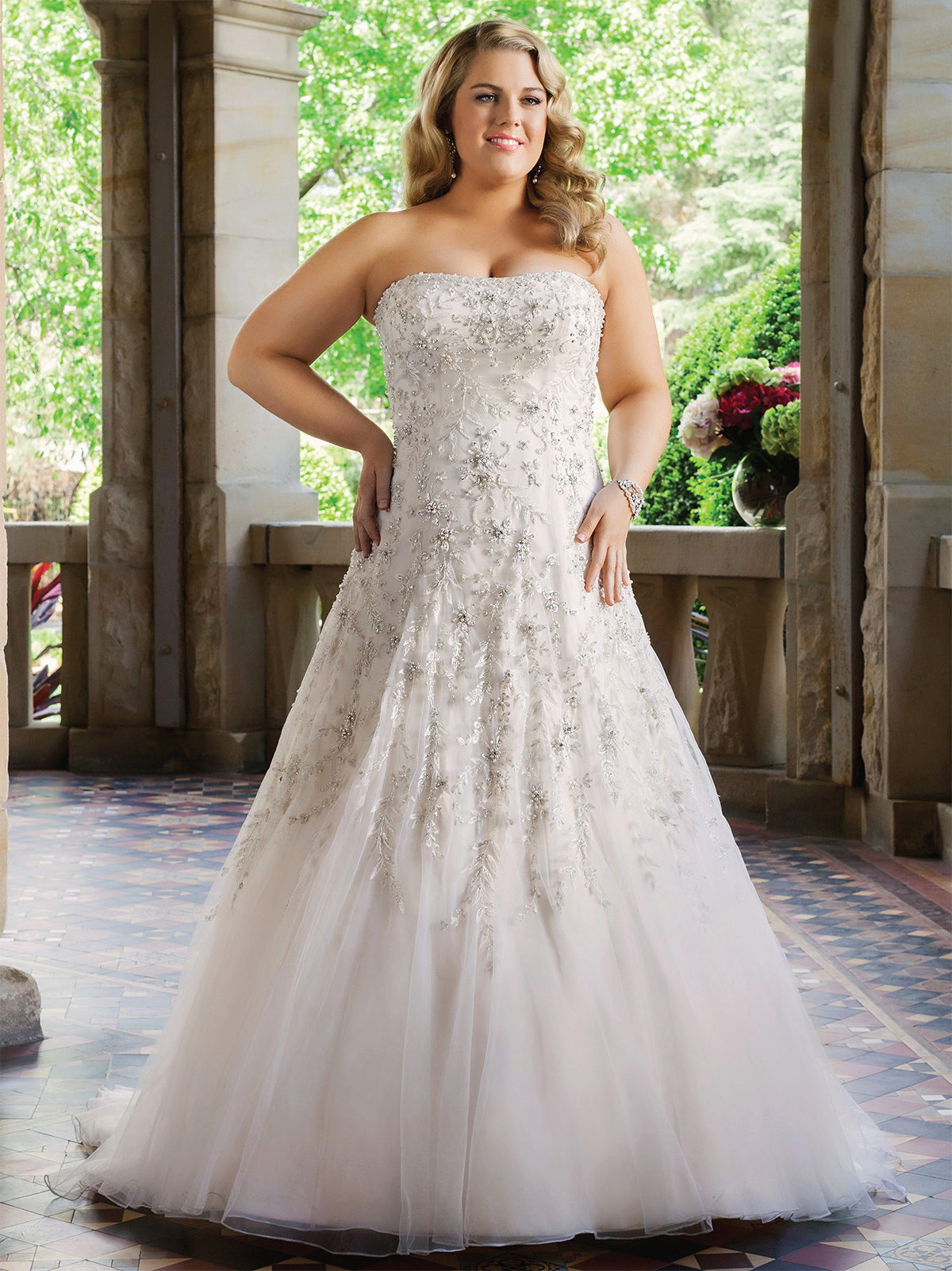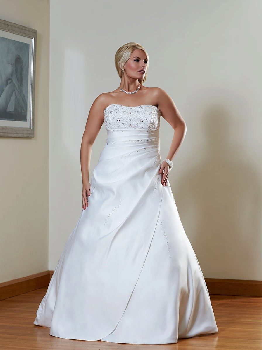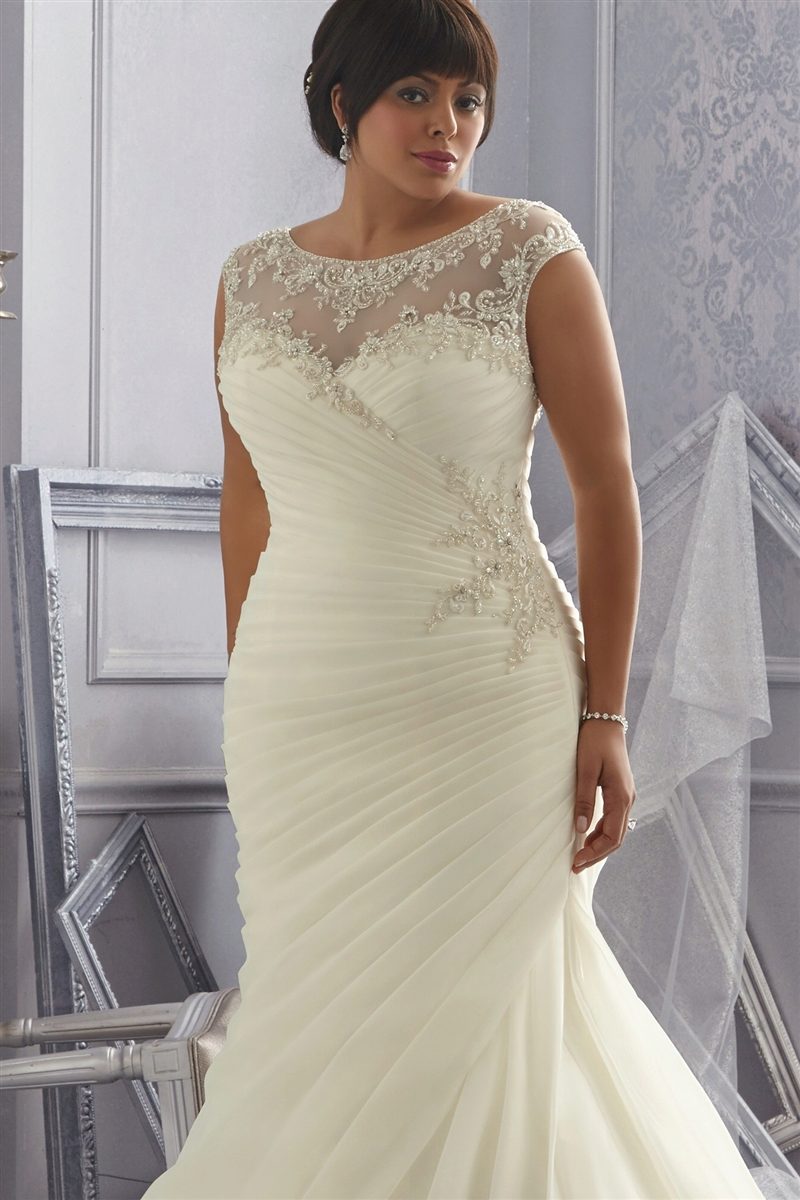 Most full brides prefer long dresses that emphasize the uniqueness and solemnity of the event. Recently, however, short dresses are becoming more and more popular, especially among owners of beautiful slender legs that they want to demonstrate.