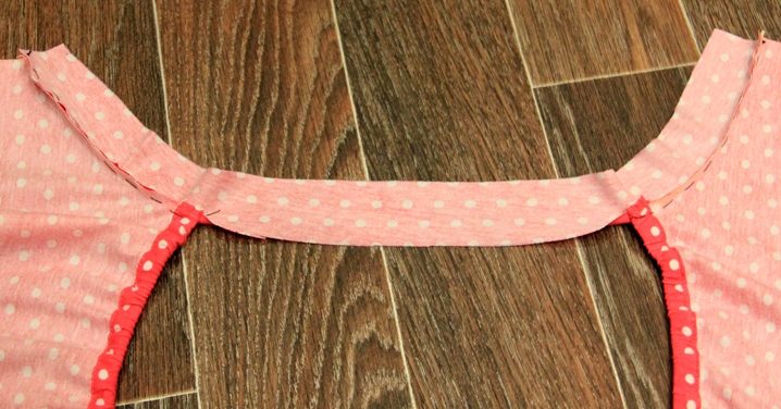 Take a T-shirt and circle it, not forgetting the seam allowances. Immediately on the fabric, model the neckline of the front neck, making it deeper or more closed, asymmetric, or gang.