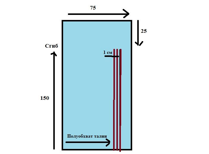 - Rectangle width not less than 140 cm and the desired length for the skirt, fold in half.