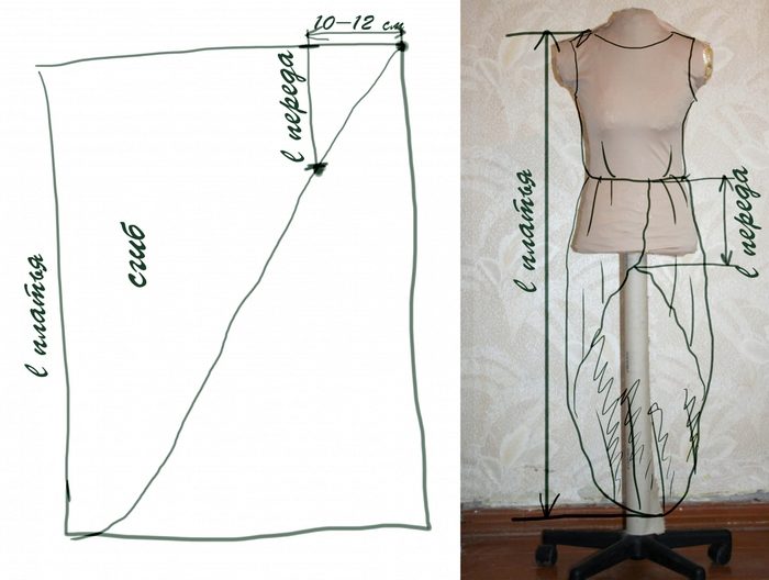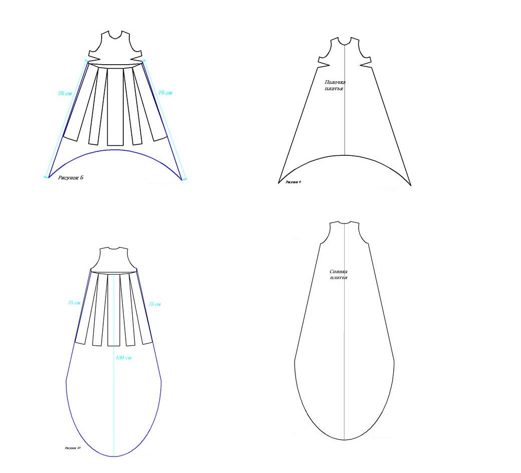 A one-piece dress with an asymmetrical bottom should fit snugly at the top and then expand from the armhole. Since the material is transparent, then cut in two layers of the main fabric or for the bottom, use lining, so that the dress does not shine through. The number of layers, the length of the dress on the back, and the width will determine the amount of fabric. As for the width of the skirt, the bigger it is, the more beautiful it will be to fold.