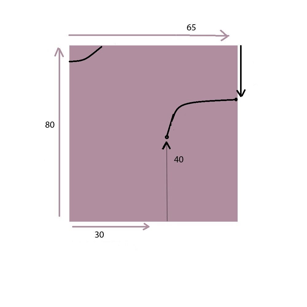 - For the sleeve, set aside 30 cm from the opposite side and connect the two points obtained by a line, slightly rounding the corner.