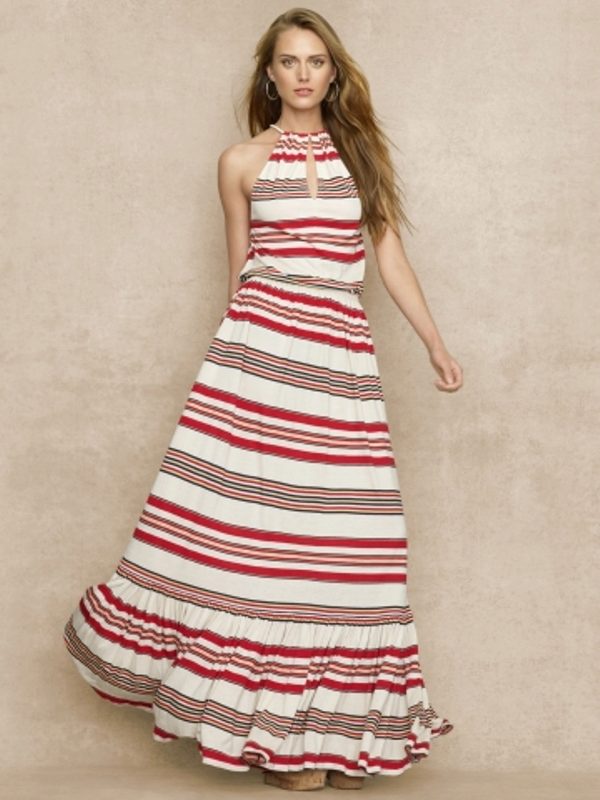 Linen fabric with stripes and a loose sundress with a detachable bodice and a half-sun skirt with a frill will give comfort in the warm season.