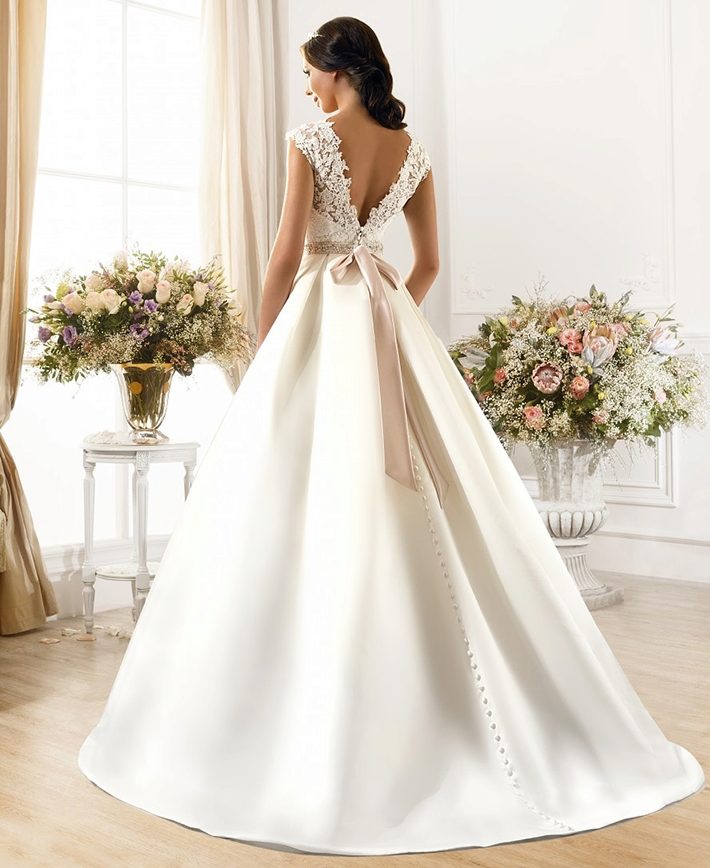 A feminine and elegant wedding dress with an open back is stylish and at the same time bold. Wearing it, the girl demonstrates her figure and posture.