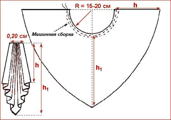 It will be obtained by adding a wedge. Cut out the train as 1/4 of a circle. Making the bottom, the line can sag more, then along the fold line the loop will be longer (dashed line in the drawing).