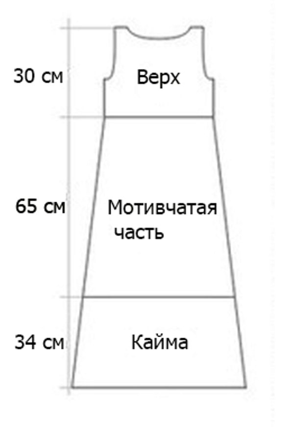 It is worth paying attention! In order for the dress to fit perfectly on the figure, it is necessary to carry out semi-motives along the edges of the canvas. The pattern of the dress will be very useful. Also consider that the more complex the motive, the simpler the connecting element should be.