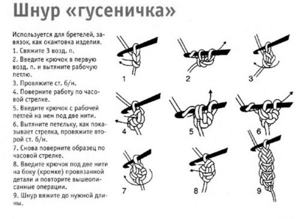 In the fillet mating there is an alternation of double crochets and air loops. Due to the filling of empty cells with double crochets, beautiful patterns are obtained. Knitting bilateral. The row is knitted first in one direction and then in the opposite direction.