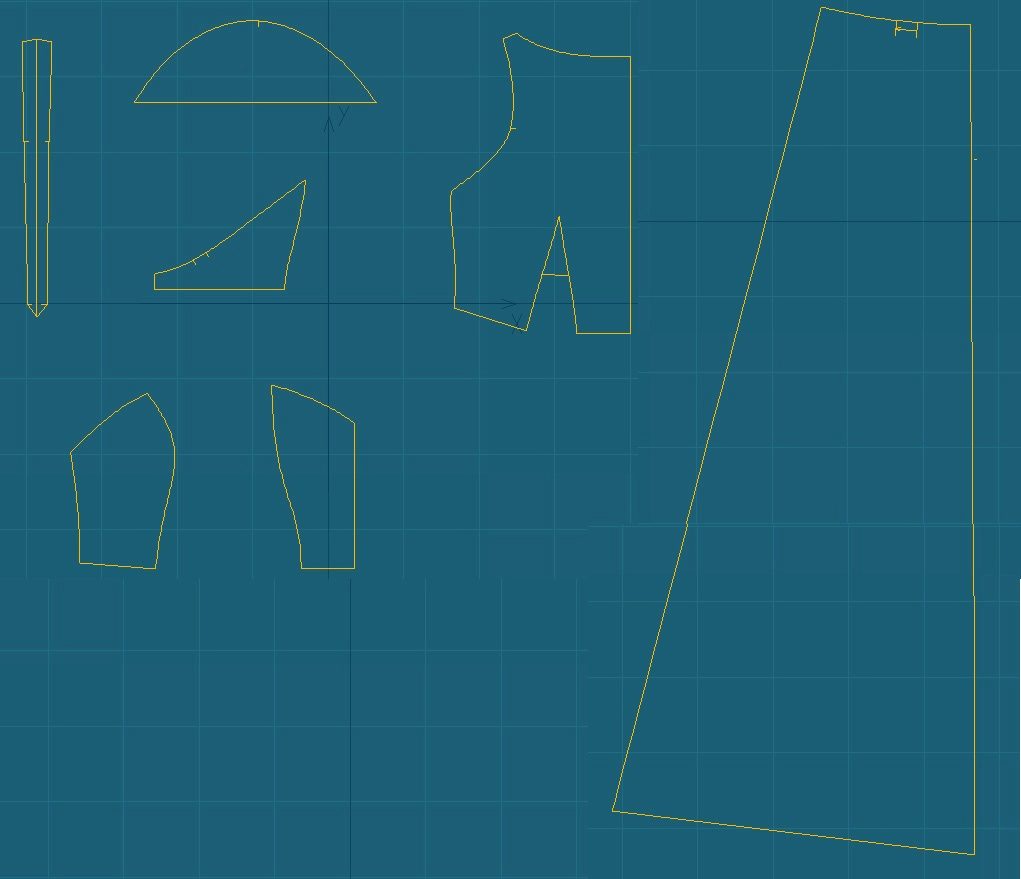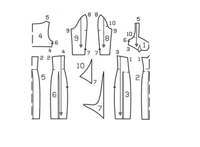Transfer parts to a large sheet of paper to fit your size. Do not forget to add allowances: 1.5 cm for the cuts and at the seams, 1 cm for the hem of the bottom of the dress and lining. You can make a more accurate pattern of the desired size using the RedCafee program.