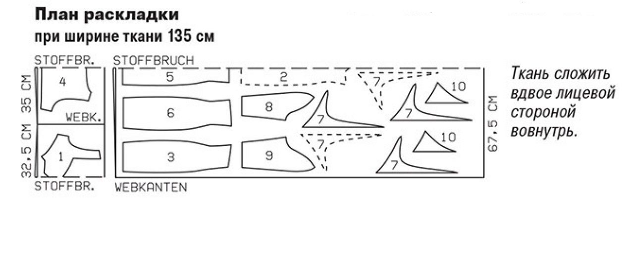 Please note that when cutting sleeves and skirts, their lower edges should fall on scalloped edges of lace fabric.