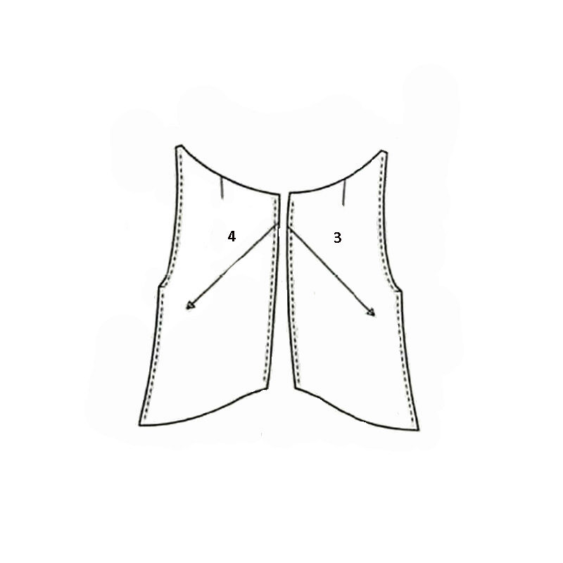 - Sew and iron the tuck in front and back of crepe de chine and lining fabric. Sew the left side seam on the parts.