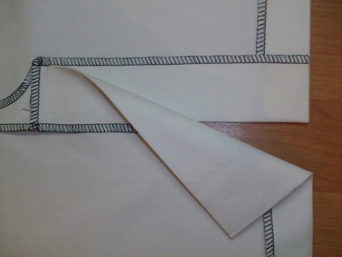 - Along the cuts of the armhole and neck, sew the back and back stitch over the wrong side.