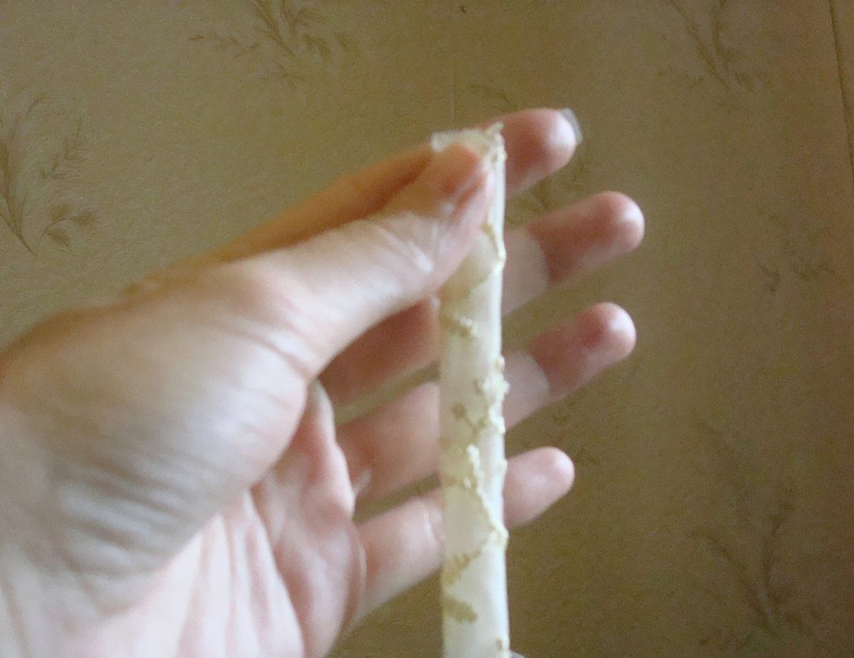 - Cut the ribbon with the bones along the length of the scenes. Thread them and secure the ends.