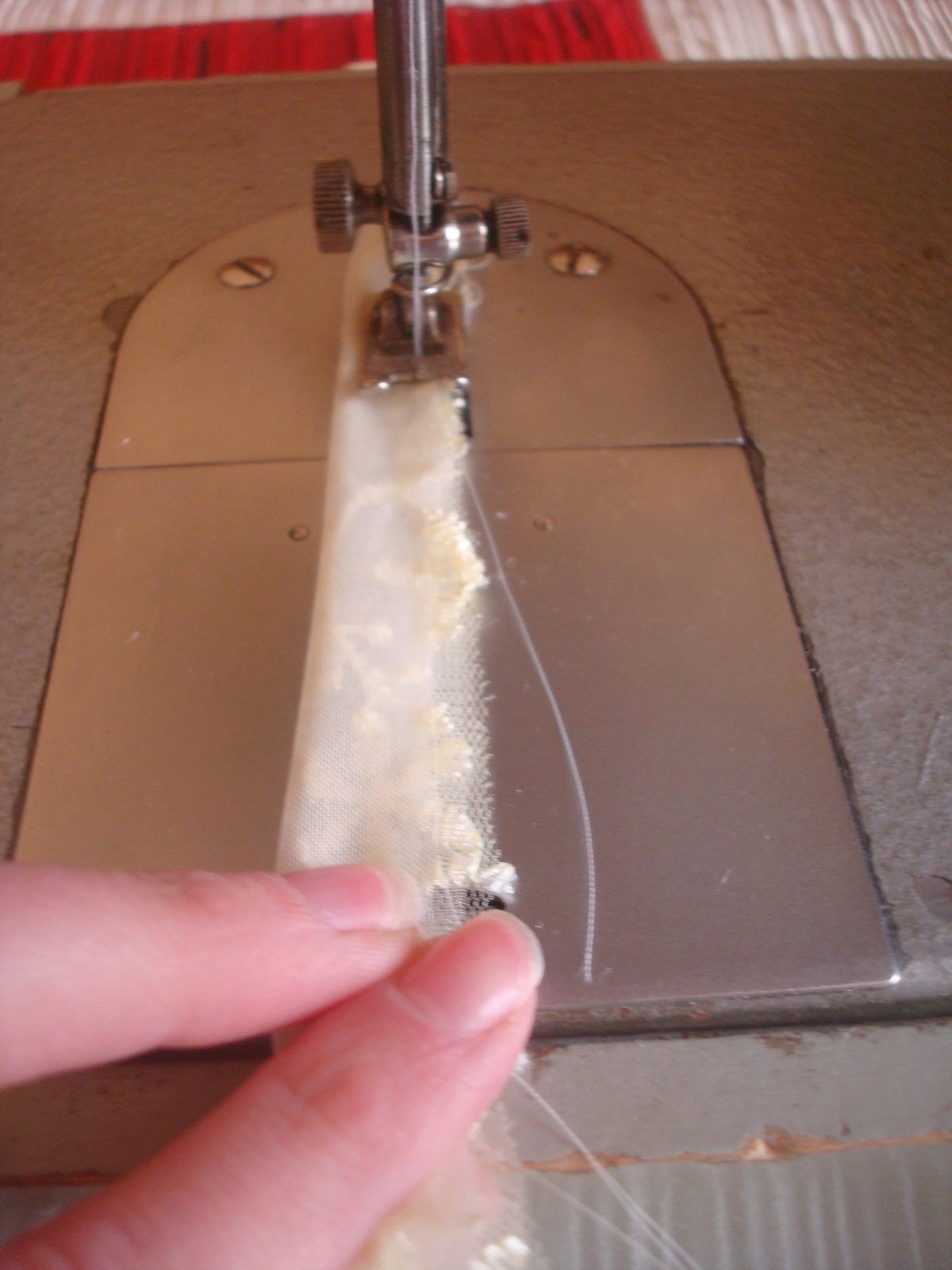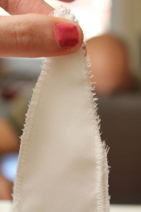 - Sew the upper sections of the two layers of satin on the wrong side, leaving areas for stitching on the back. Remove the cover and iron the top edge.