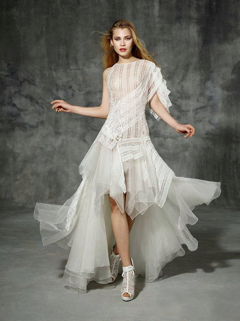 But do not forget about the nature of the event for which the dress is chosen. More daring outfits will be appropriate in other cases, but at a wedding you can limit yourself to a length of mid-calf or a maximum - up to mid-thigh. Leave a little mystery, it has not prevented anyone. Due to the restrained and closed top, a short skirt will not look defiant and too frank. And even for a traditional wedding ceremony, such a dress is quite suitable.