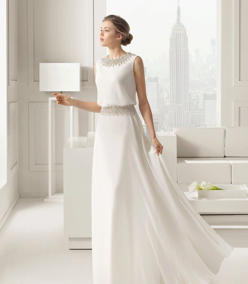 The color of a modest classic dress for wedding is almost always white, and in no case should it be bright or flashy. Accessories that complement the image should be appropriate.