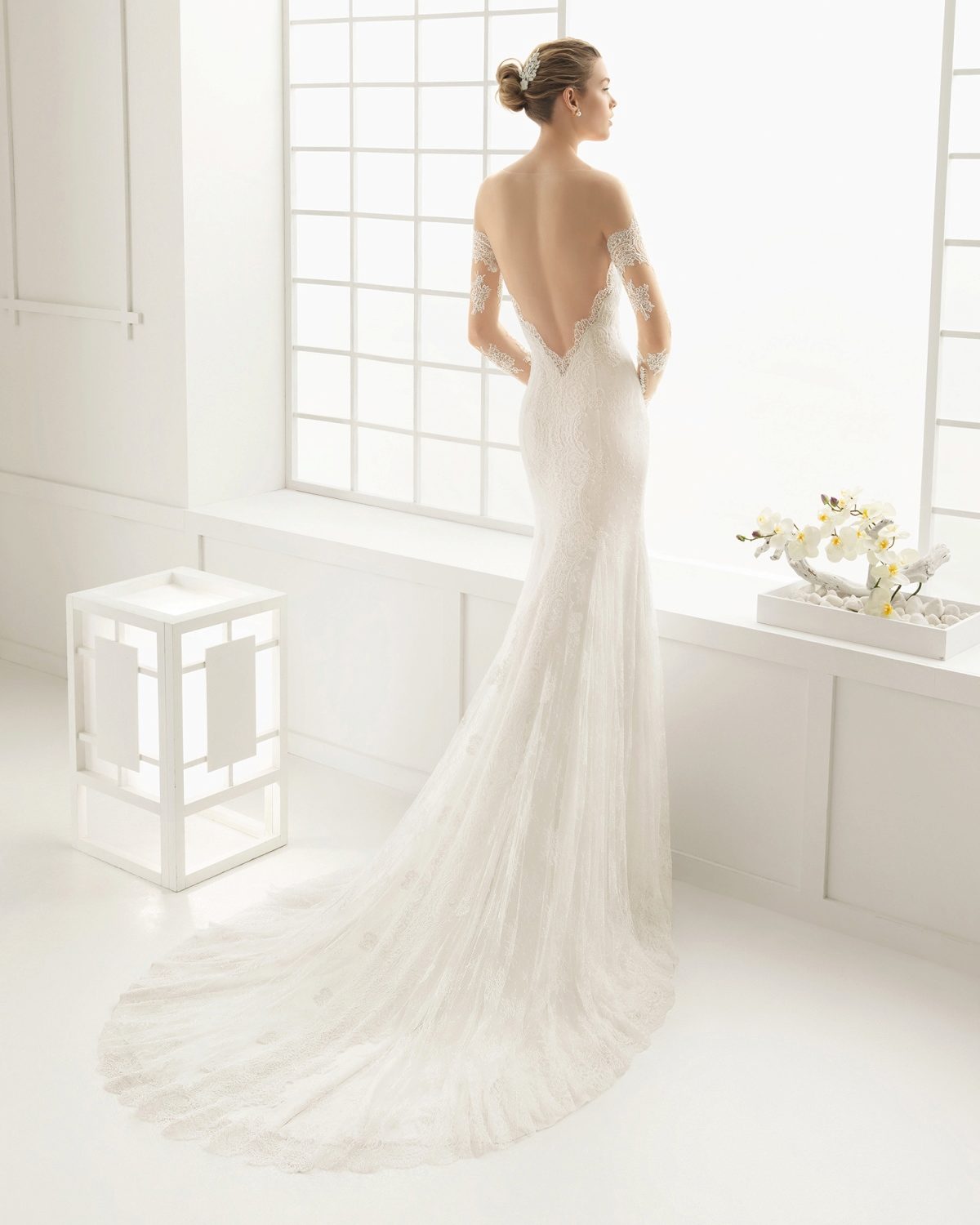 The choice of dresses with bare back and majestic train is huge. Many variations of the notch are presented, which can be deep, translucent or modest.