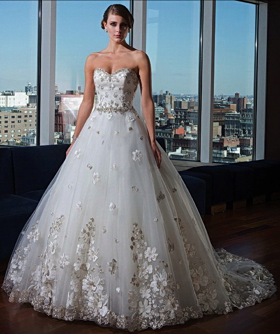 For a wedding dress A-shaped silhouette or style of the princess there are no ugly figures, endowed with flaws. The fluffy skirt, which smoothly descends and takes the form of a “shot glass”, is the ultimate dream of medieval young ladies, who at one time could not achieve such an effect.