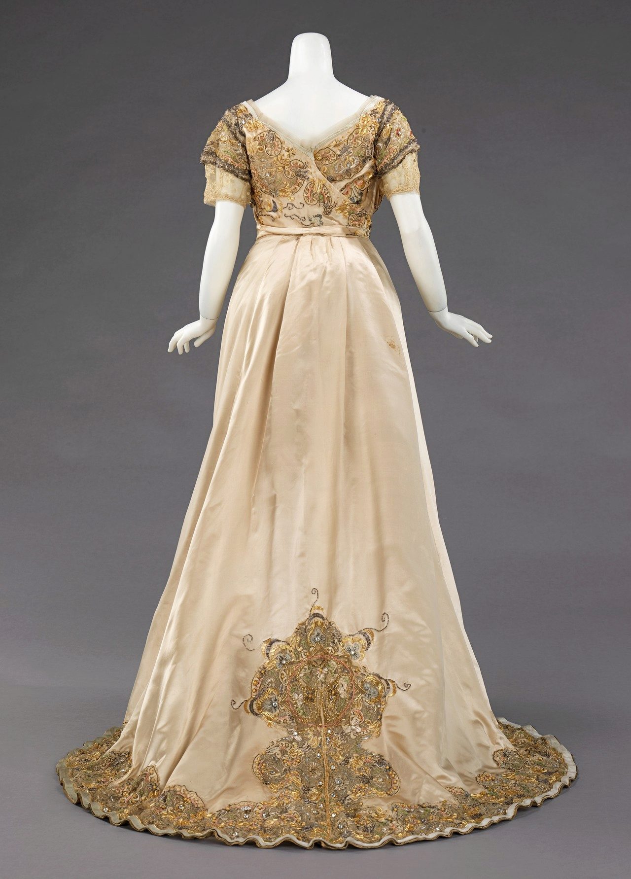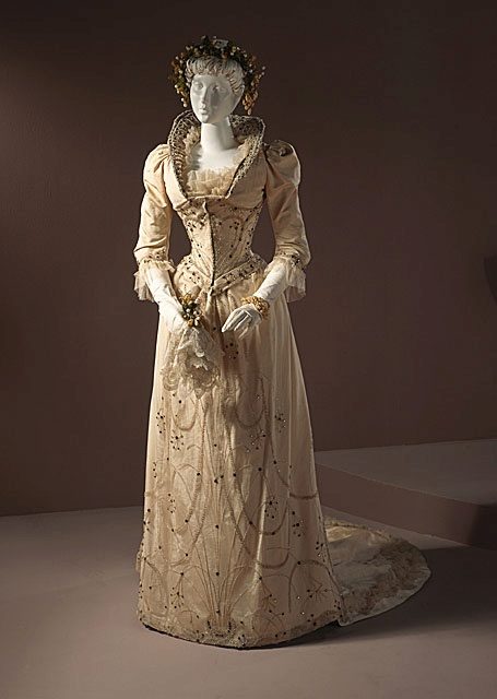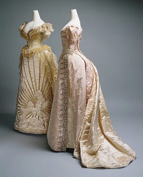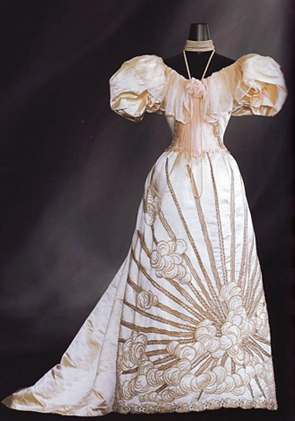 The most popular fabric was satin, which was decorated with pearls and natural rock crystal. Under the sunset of this century, narrow skirts began to come into fashion.