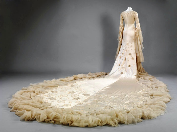 This period was marked by the high popularity of natural expensive fur in wedding dresses. Only very wealthy ladies who chose mink and sable fur could afford such a finish.