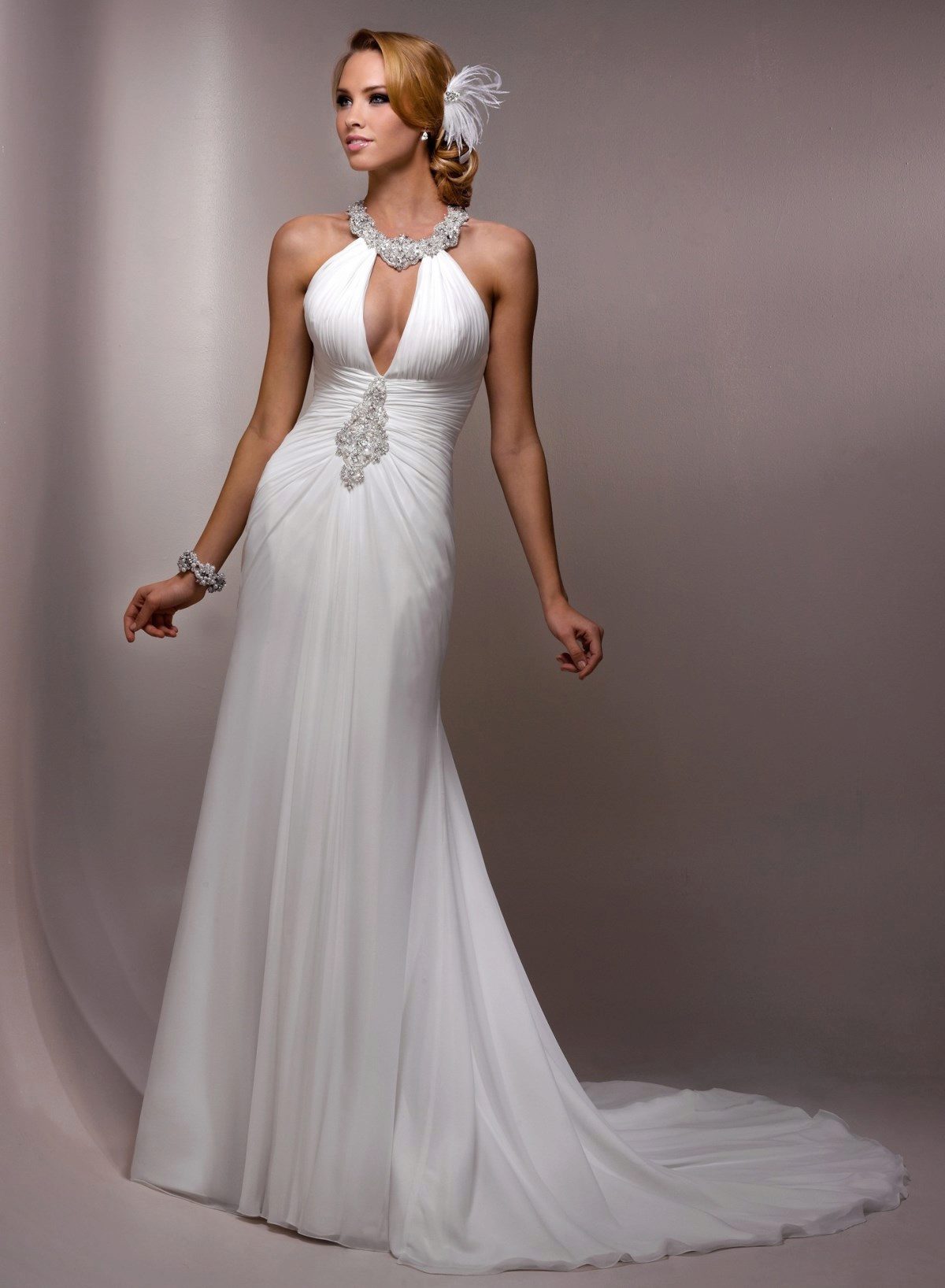 Today, this antique style with its clean lines and seeming simplicity of cut helps to create an amazingly feminine and, at the same time, noble image of the bride, which combines seemingly incompatible qualities - innocence and sexuality, purity and seduction.