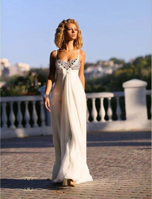 The main decorative elements are located, as a rule, on the bodice and on the belt under the breast. And here the couturier has great opportunities to decorate such a seemingly simple style: you can drape the bodice (this model is especially suitable for a small breast), you can decorate it or a belt with gold or silver threads, beads, pearls, rhinestones, sequins, ribbons, flowers, even precious or semi-precious stones.