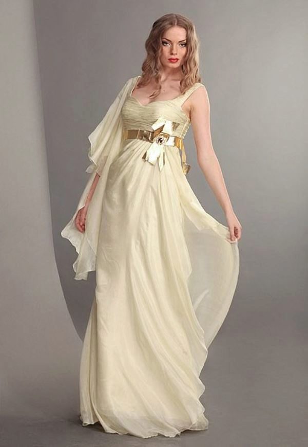 The ancestor of the Empire style in fashion can be considered the Empress Josephine Beauharnais, the wife of Napoleon. In this era, the ideal of ancient simplicity was intensively implanted, and the garments of ancient Greek statues became a model for women's dresses. Therefore, Greek wedding dresses and dresses in the Empire style are often identified with each other.