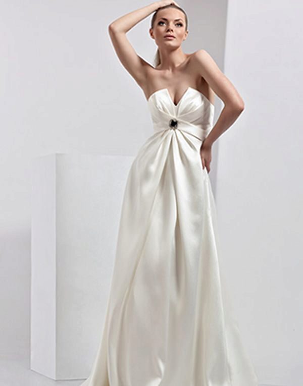 An empire dress is a real find for tiny, fragile and full brides with wide hips and extra fat at the waist, since the vertical lines and folds besides that hide fragility or extra kilograms, they seem to lengthen the figure, make it taller and slimmer.