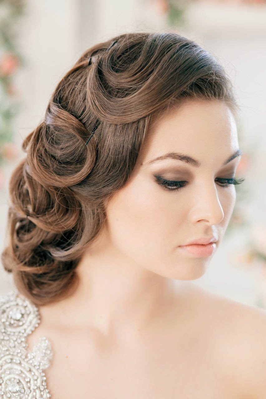 But it is best to lay the hair on one side and complement them with rhinestones, hairpins and feathers. Then you will rather be able to achieve the perfect image of the bride of those times.