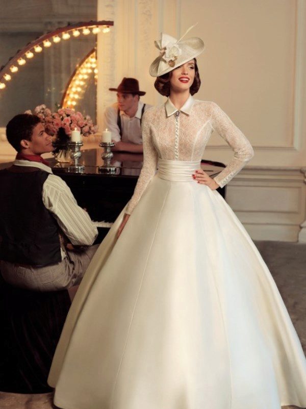 Wedding dress in retro style will be original, will give your celebration exclusivity. Do not forget the other moments of the celebration, the design of the hall and the suit of the groom should match your style. Maybe you should take care of retro-tuple?