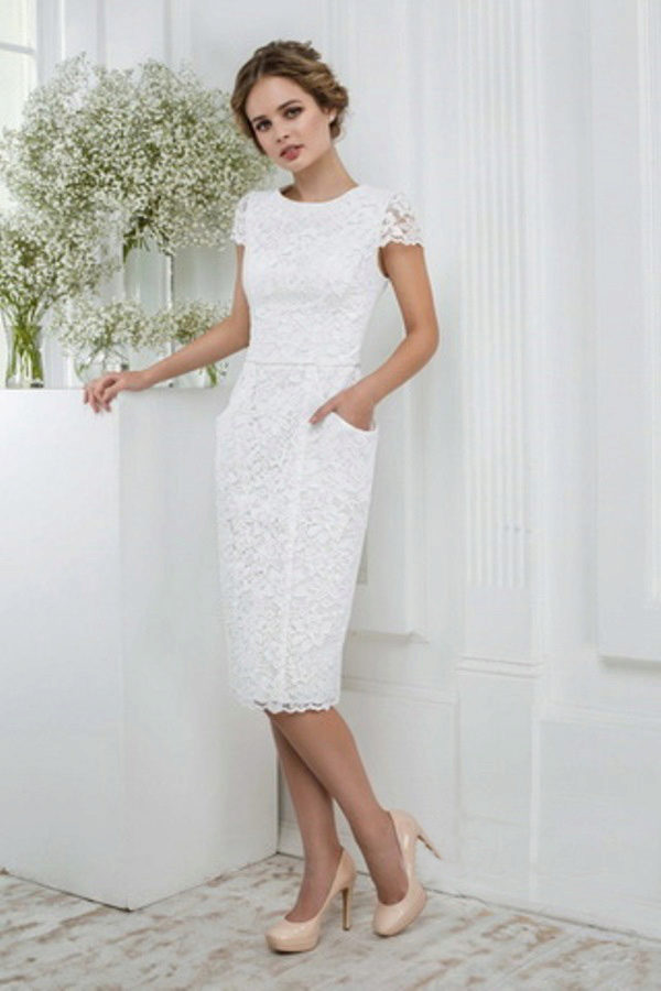 - If this is an evening version of a wedding dress, then it is complemented by a deep neckline. For day attire, the cutout is more restrained;