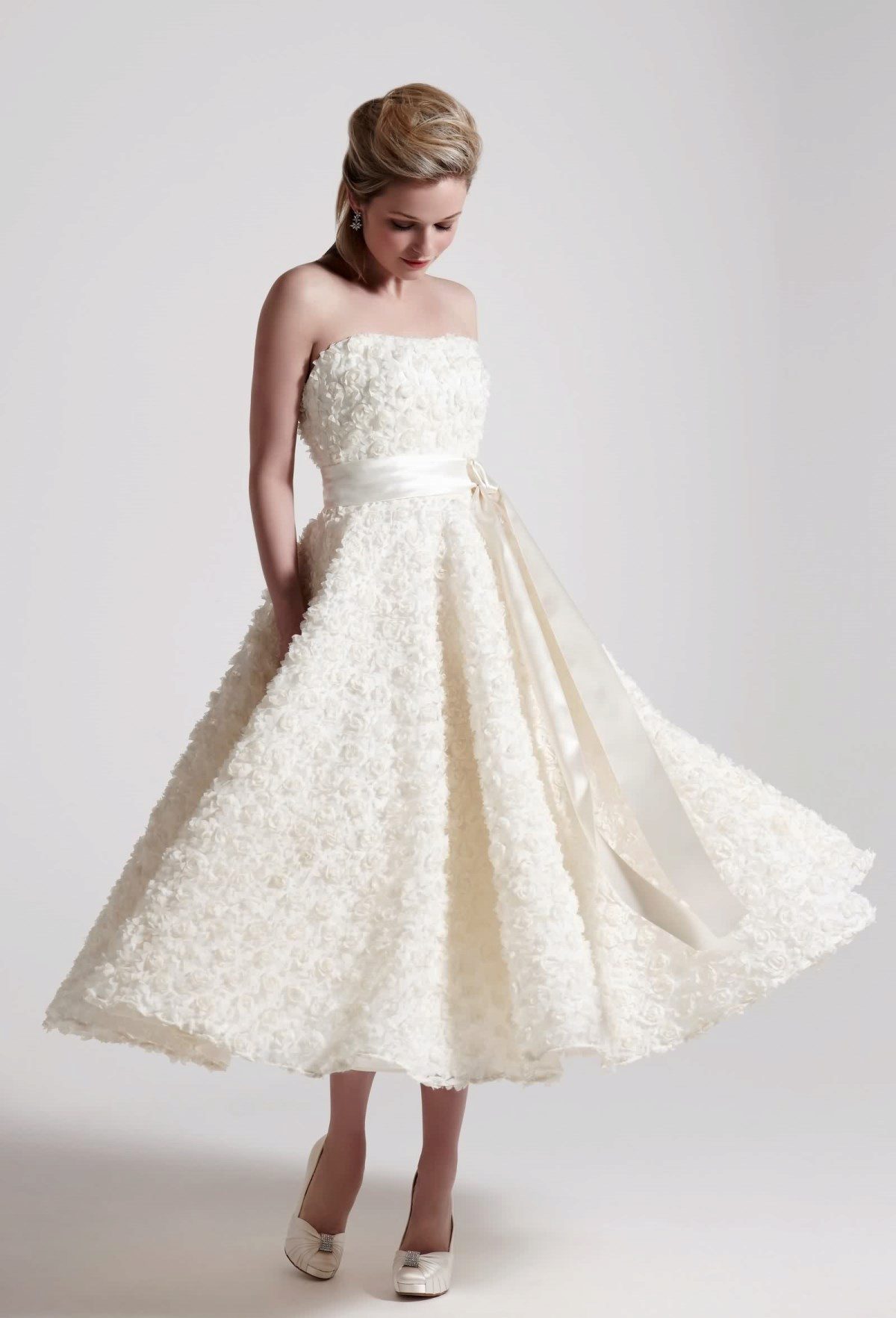 Yet the main feature of the dresses of that time is considered a skirt, supplemented by a petticoat, which includes several layers of fabric. With her help, the dress as if rises by itself, revealing the graceful legs of the bride.