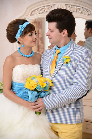 Of course, to achieve harmony and play a themed wedding will be obtained only on the condition that the groom will also be dressed in accordance with this style.