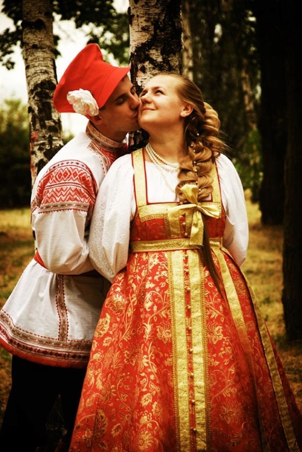 Gone are the days when Russian girls dressed up in red wedding sundresses. Truly beautiful robes were luxuriously embroidered.