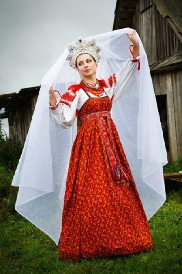 With the baptism of Russia, they were replaced by wedding dresses of a very simple and modest appearance, sometimes even in black. For a family celebration, especially revered by the people, on the contrary, a luxurious dress of the most different shades of red was taken from the chests; it could be crimson and cherry or scarlet, red or crimson, which symbolized life, joy and love.