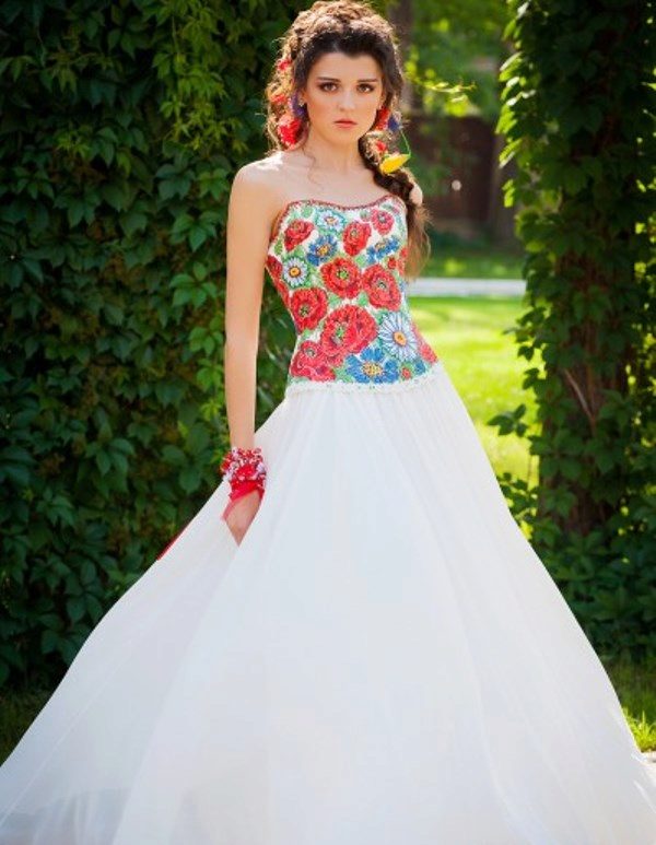 Take as a basis the traditional national thought, modern materials and you will have the opportunity to create an interesting, bewitching beauty, wedding dress.