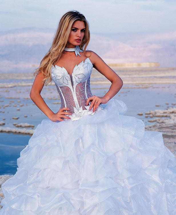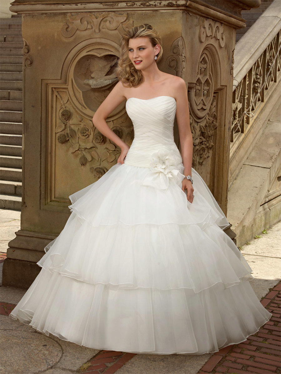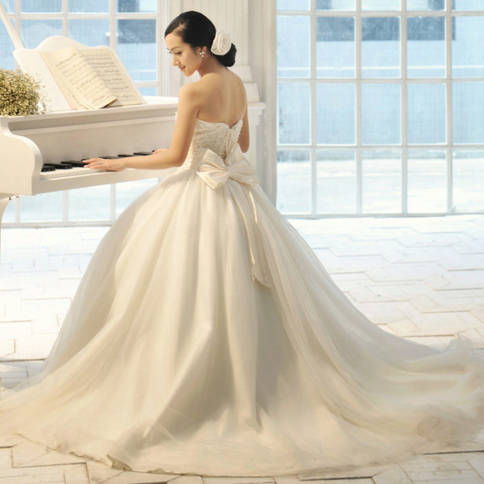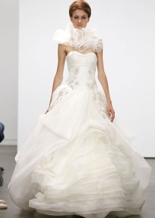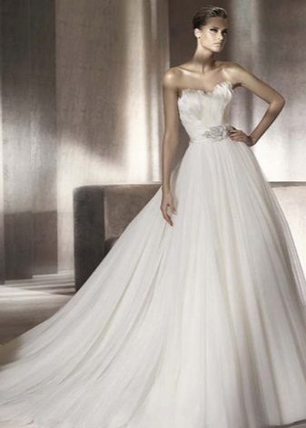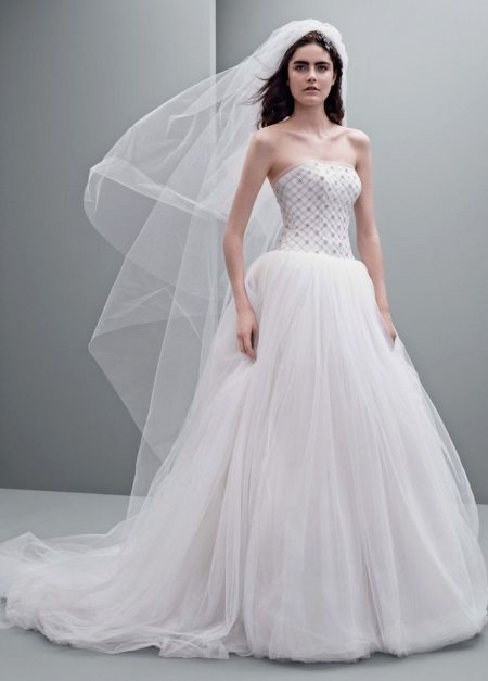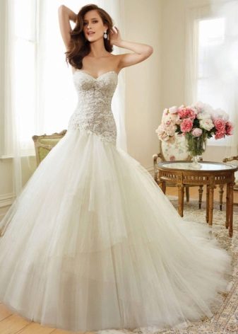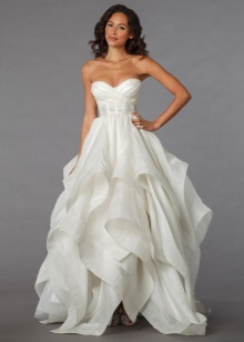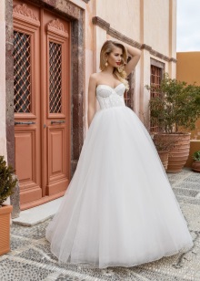The most popular and favorite version of the wedding dress with a dense upper part are fluffy dresses. After all, for girls, the wedding day seems to be somehow magical, and therefore they themselves want to look like princesses from a fairy tale.