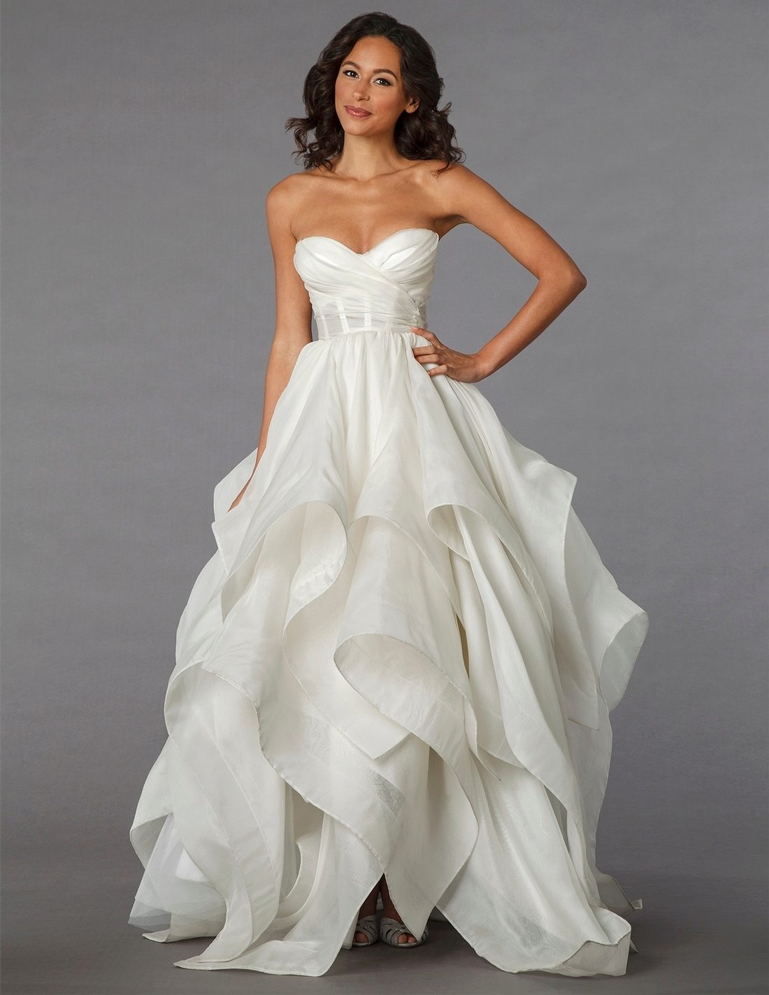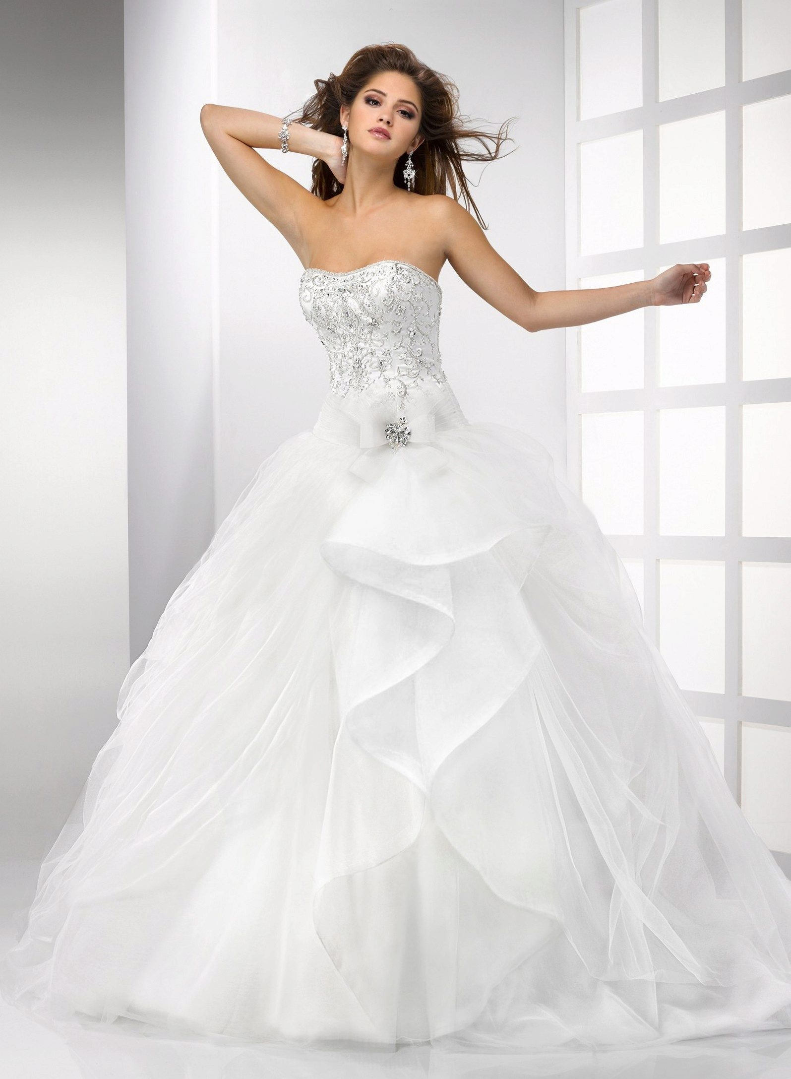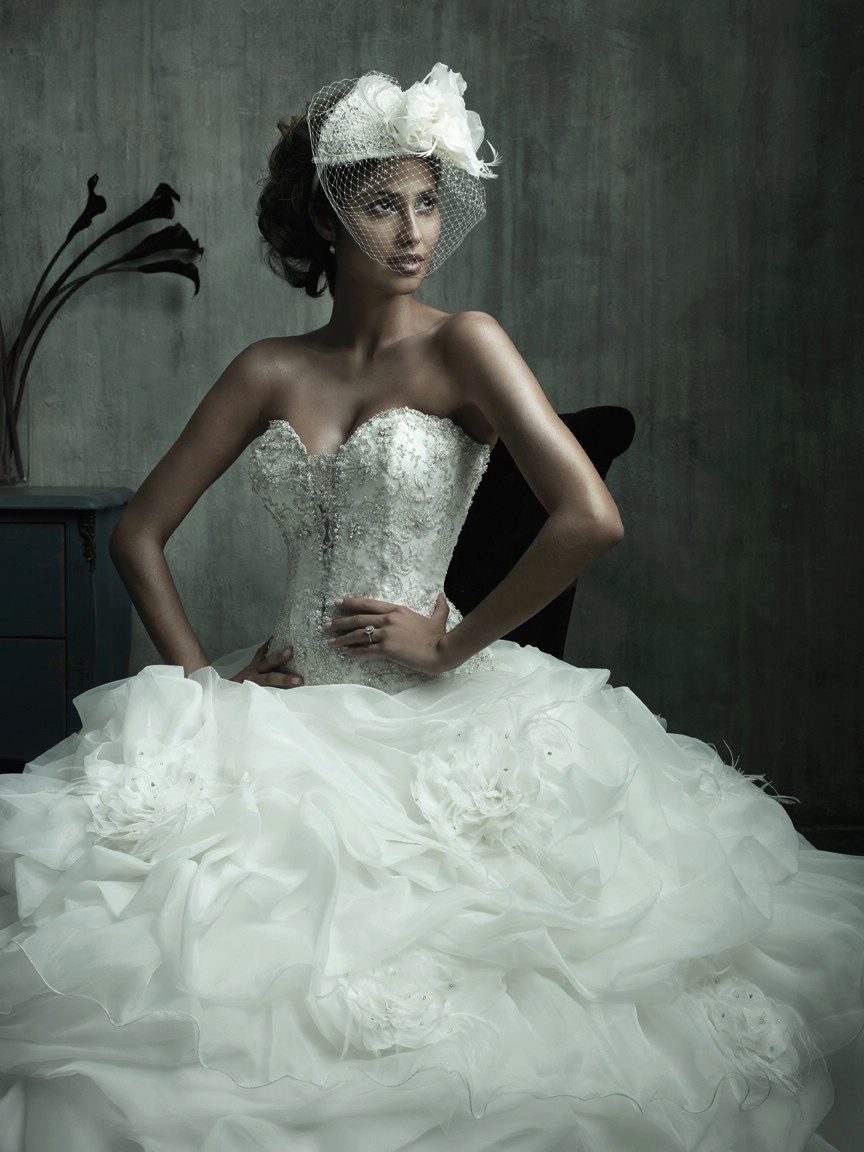 The most popular and favorite version of the wedding dress with a dense upper part are fluffy dresses. After all, for girls, the wedding day seems to be somehow magical, and therefore they themselves want to look like princesses from a fairy tale.