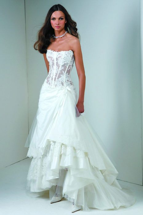 The choice of an elongated corset in a wedding dress will allow us to more or less pull the figure in certain places, creating an ideal silhouette.