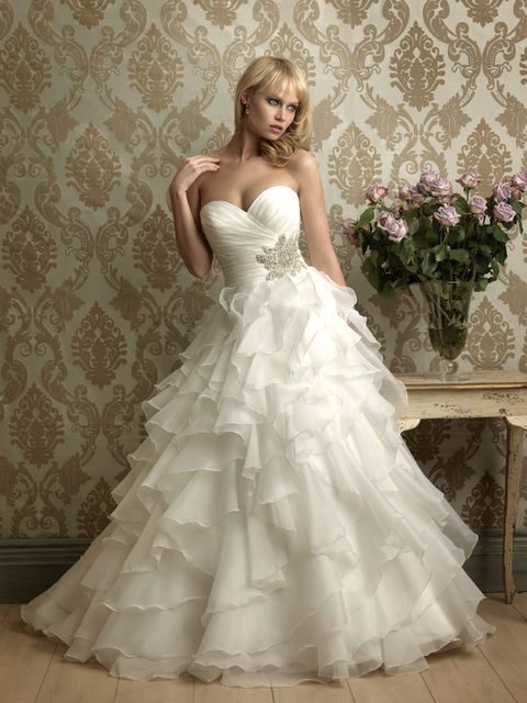 - expanding downwards, the so-called A-shaped. This style of wedding dress is not suitable for girls of short stature and with large volumes.