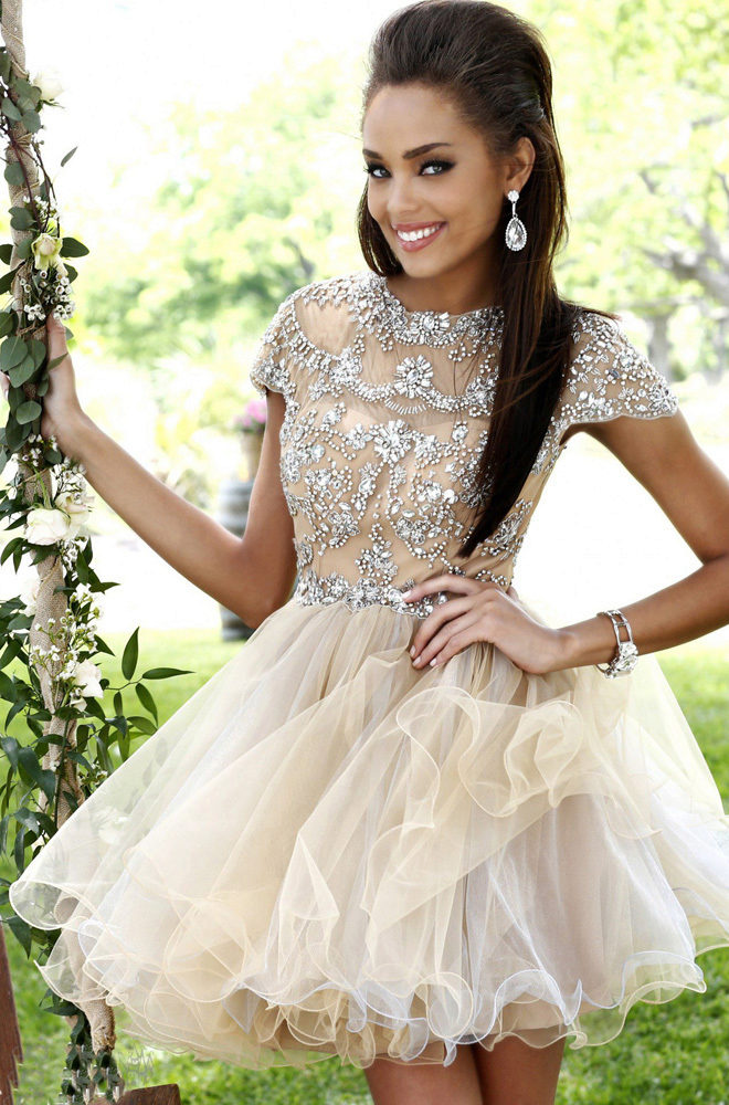 For girls who at any age are not afraid to experiment and shock, fashion designers offer short models. They are feminine, but rather cheeky. Fitted dresses in white with a short and full skirt resemble a tutu and look very impressive.