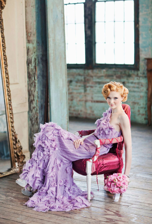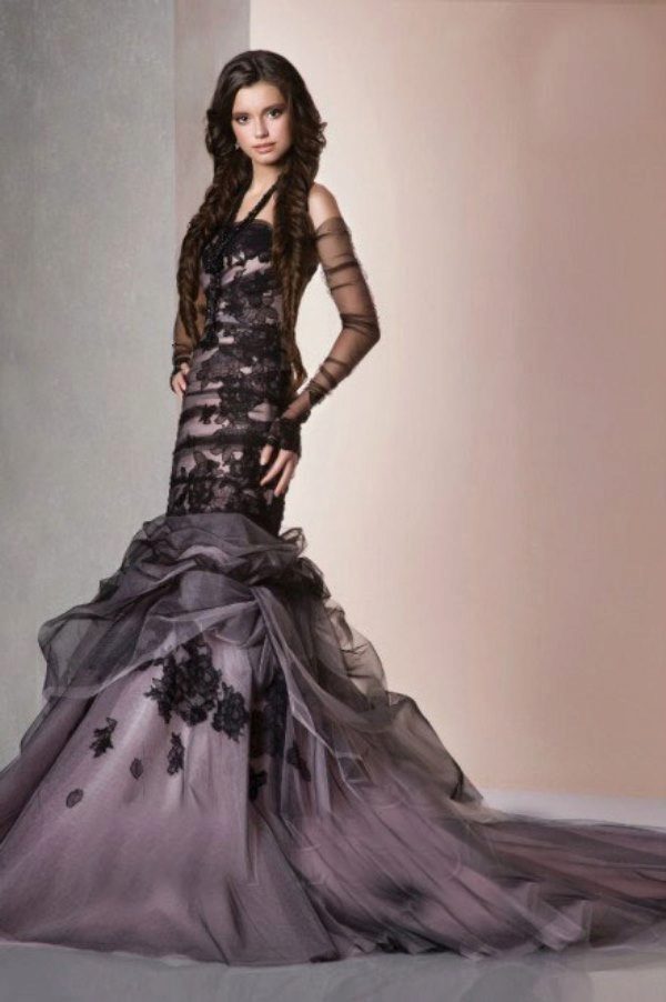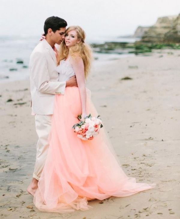 It is believed that light cream dresses are ideal for brunettes brides, and lilac - for blonde girls.
