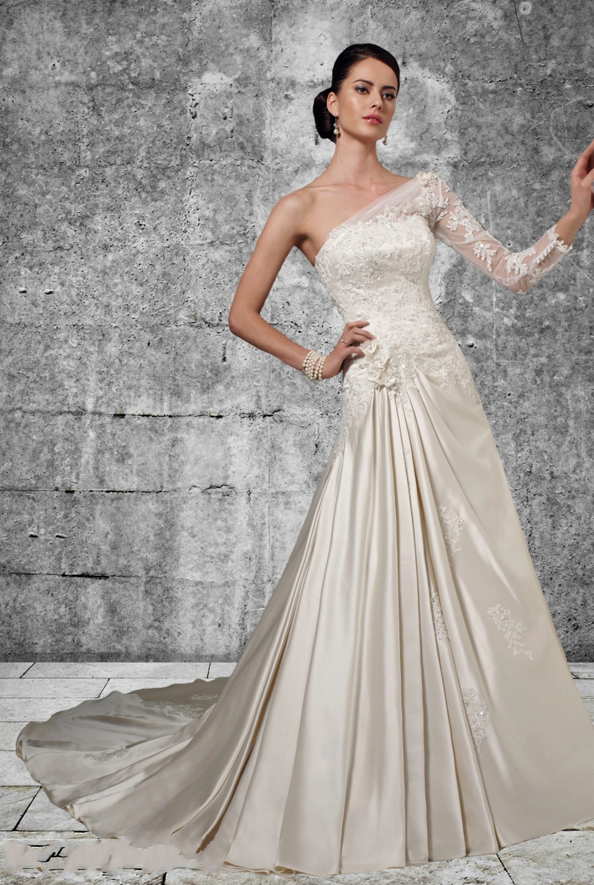 Very refined, bold and sophisticated version. Imagine how you expose one shoulder, while the other is amazingly decorated with drapes.