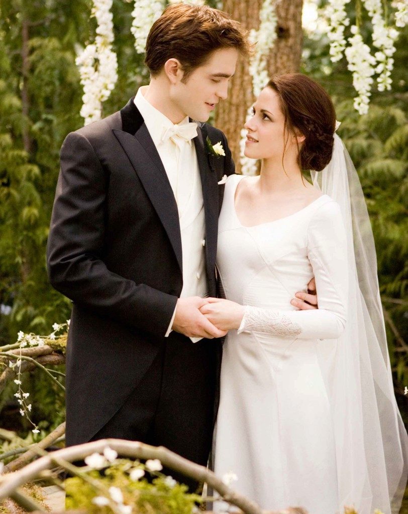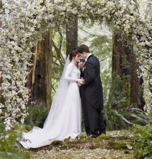 Carolina Herrera worked on the creation of a chic dress, in which the main character of the film “Twilight” dressed herself appeared before the altar. Delicate crepe satin, which only exists in nature, and the finest lace from France formed the basis for the creation of a dress. There were 152 buttons on the back and 34 more on the sleeves. The total cost of the dress exceeded 30 thousand dollars, but there are more affordable analogues available for sale.